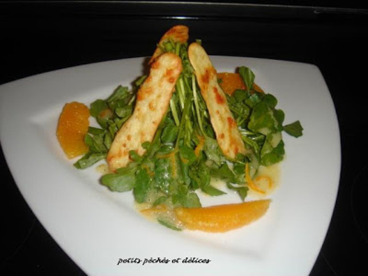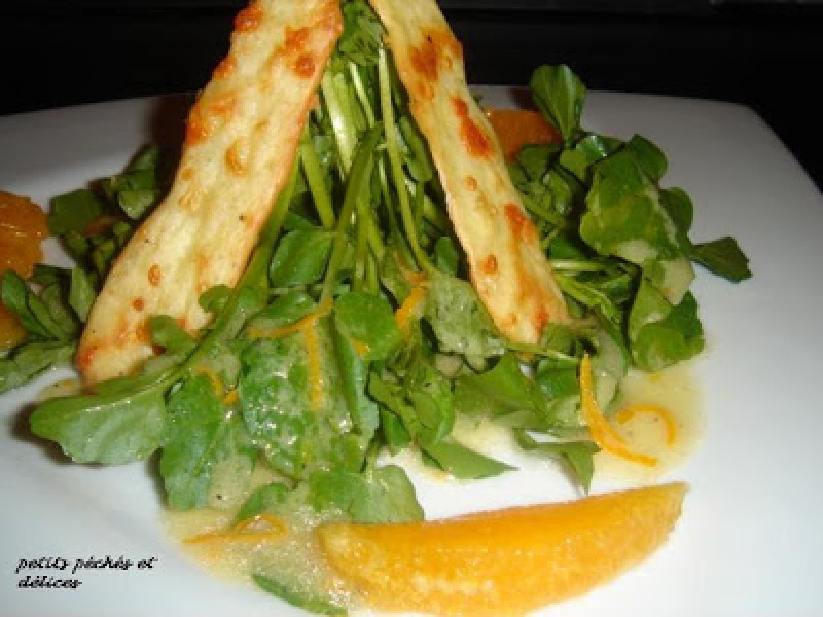 Salade de cresson à l'orange et ses craquelins au parmesan