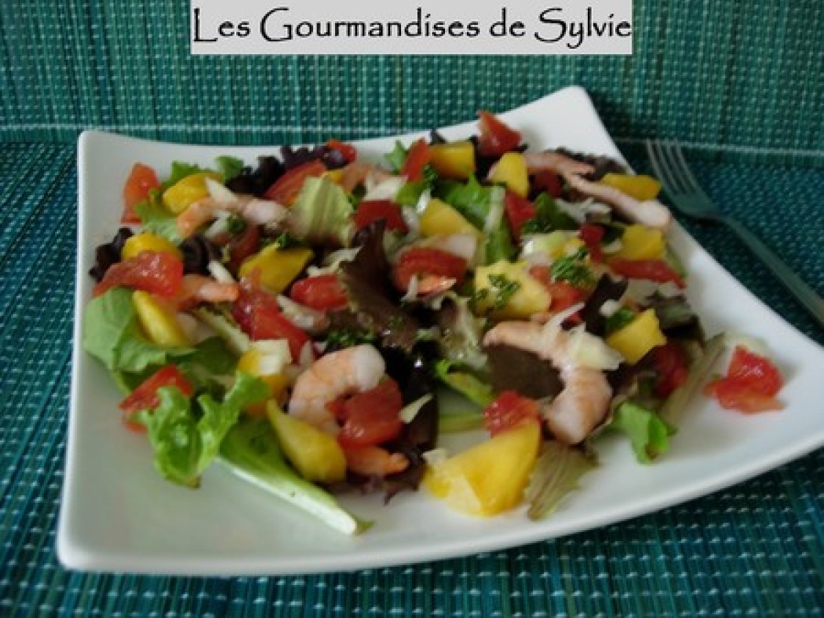 Voici une salade de crevettes à la mangue agréablement assaisonnée de jus d'agrumes, vite faite et qui met vraiment en appétit !