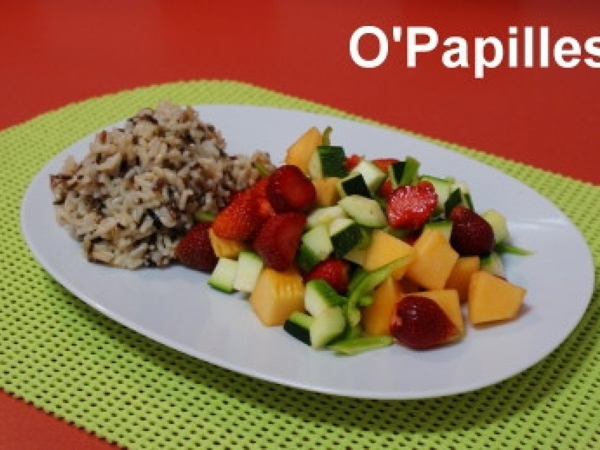 Salade de fraises, melon, poivron, concombre et courgette Entréefacile20 min Envoyer cette recette à un ami Imprimer cette page Poser une question à l'auteur Publier votre photo de cette recette Ingrédients 3 200 g de fraises 1 poivron carré vert 1 concombre pépino 1 courgette 1 demi melon 1 cuillère à soupe d'huile de colza 1 cuillère à soupe de vinaigre de cidre sel et poivre