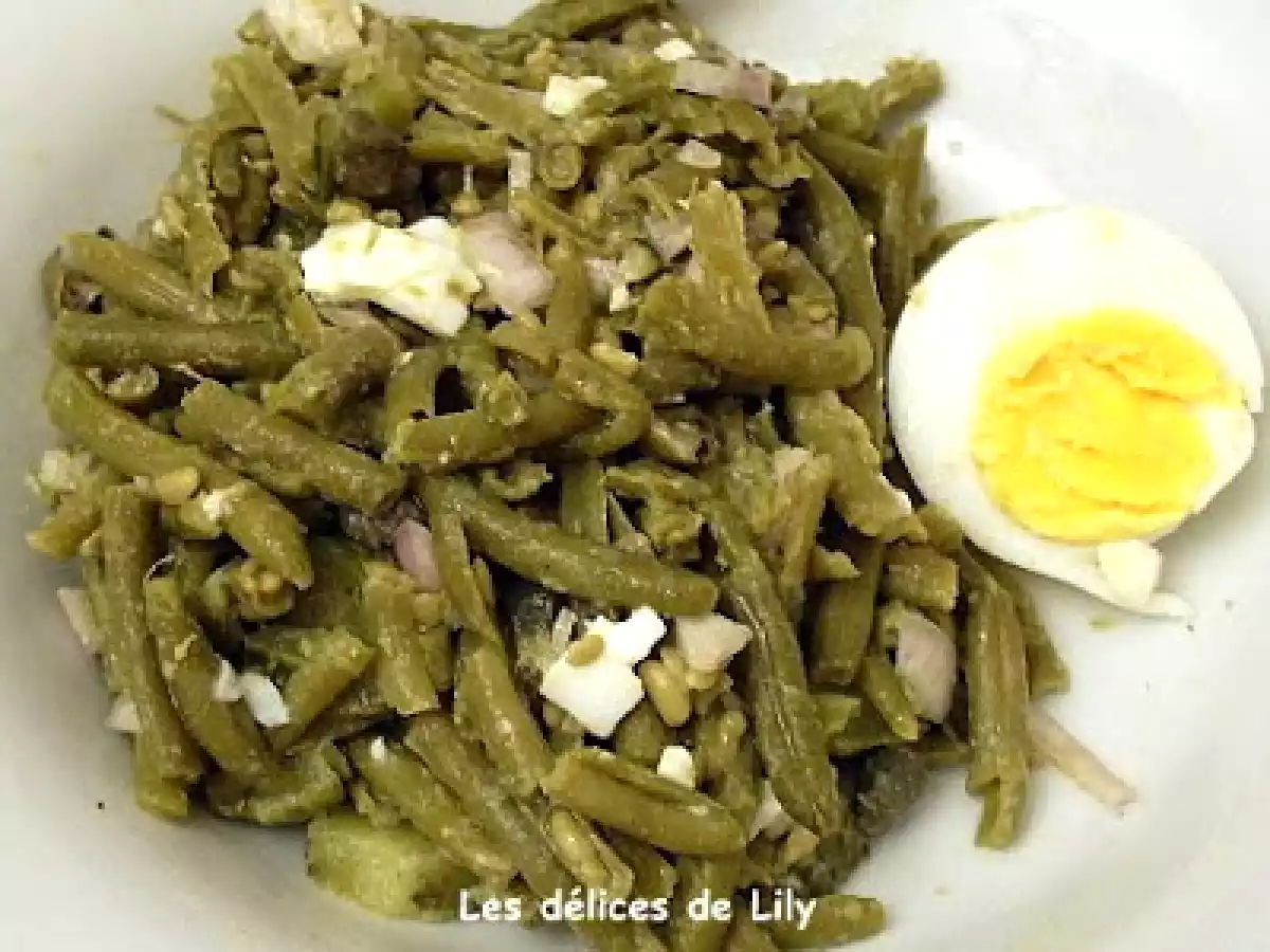 Salade de haricots verts, vinaigrette a l'oeuf ecrase