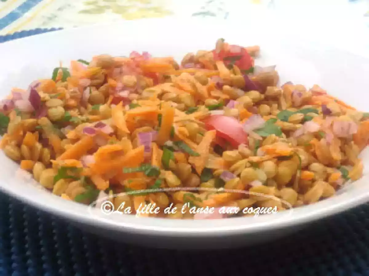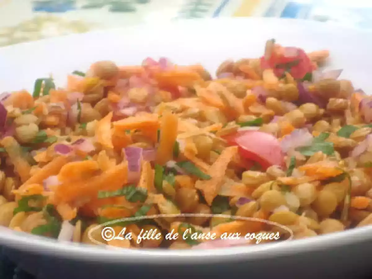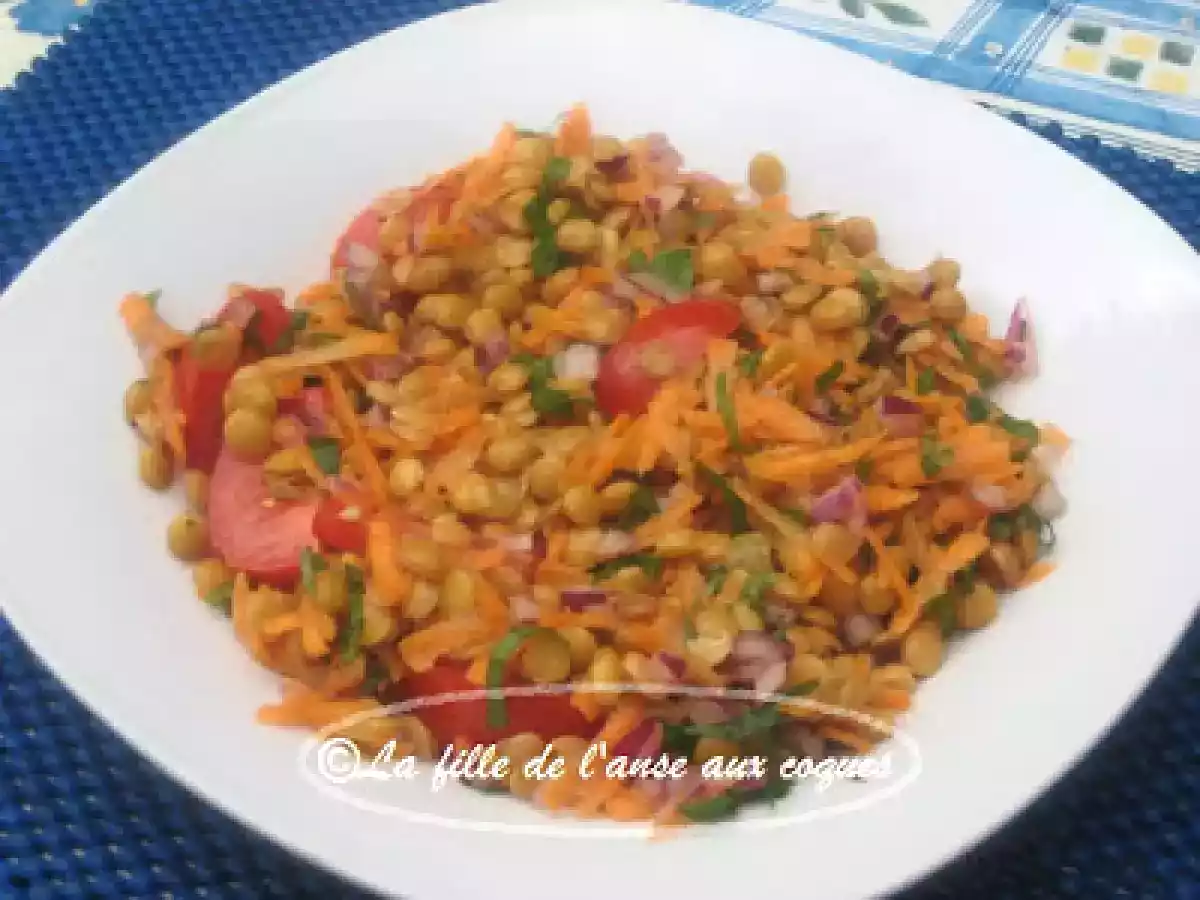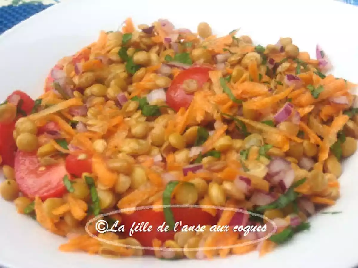 Salade de lentilles à la menthe votez maintenant PrécédentSuivant Entréefacile15 min Envoyer cette recette à un ami Imprimer cette page Poser une question à l'auteur Publier votre photo de cette recette Ingrédients 4 2 boîtes de lentilles vertes, égouttées et rincées 1 grosse carotte hachée 1 tasse de tomates cerises coupées en quatre ½ tasse de menthe fraîche hachée 1/3 tasse d'oignon rouge, ou espagnol haché finement 3 cuillères à soupe de persil frais, haché Sauce au jus de tomate : 1/3 tasse jus de tomate 3 cuillères à soupe jus de citron 1 grosse gousse d'ail, hachée finement 1 cuillère à thé moutarde de Dijon ½ cuillère à thé de sel ¼ cuillère à thé de poivre 2 cuillères à soupe huile d'olive Ajout de ¾ cuillère à thé de miel liquide