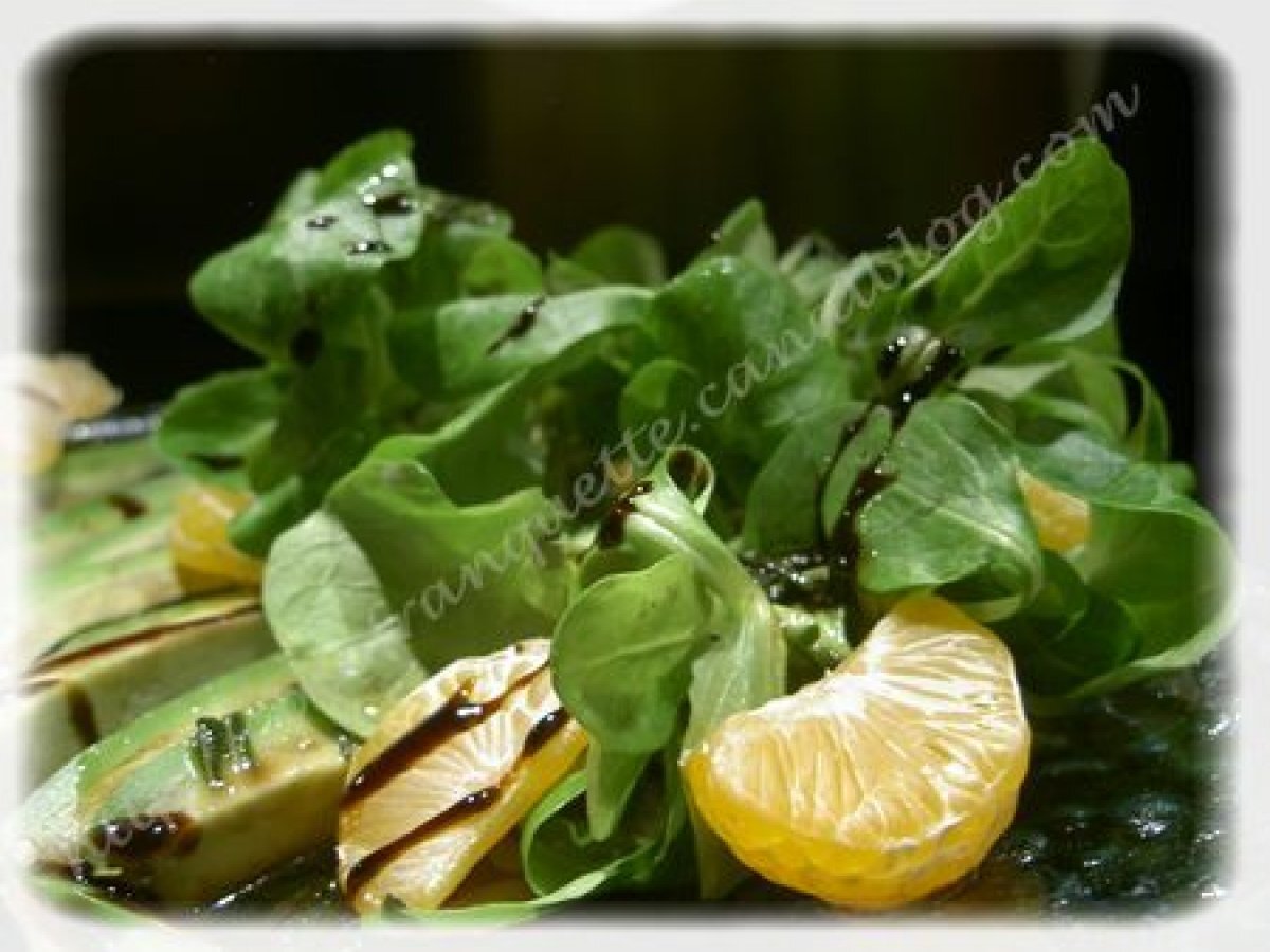 Salade de mâche aux clémentines et avocats, vinaigrette balsamique miellée Entréefacile10 min143 Kcal Envoyer cette recette à un ami Imprimer cette page Poser une question à l'auteur Publier votre photo de cette recette Ingrédients 4 500 g des mâche 2 clémentines 2 avocats 4 cuillères à soupe d'huile d'olives 2 cuillères à soupe de vinaigre balsamique 1 cuillère à café de miel liquide sel poivre Coût estimé: 4.66Euros€ (1.17€/part)
