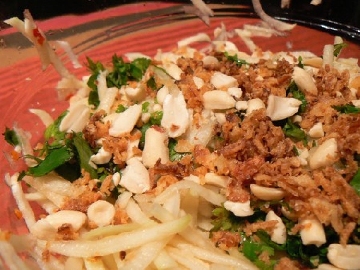 Cette salade de papaye verte assaisonnée avec une p'tite sauce aux arachides, c'est extraordinaire.