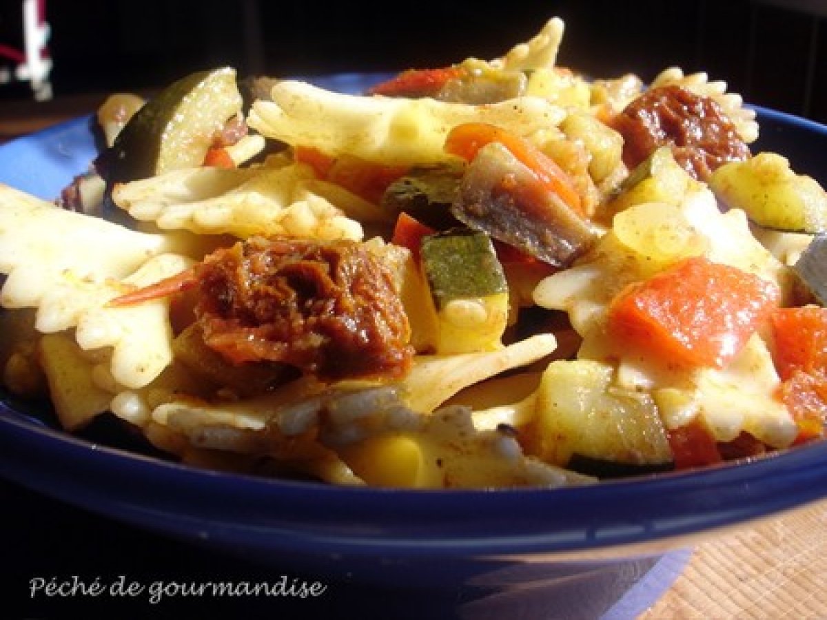 Une succulente salade de pâtes qui peut accompagner des grillades au barbecue, ou bien, tout simplement se suffire à elle-même.