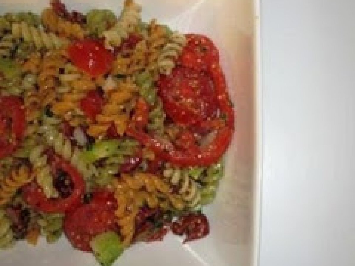 Salade de pâtes à la moutarde Entréefacile12 min513 Kcal Envoyer cette recette à un ami Imprimer cette page Poser une question à l'auteur Publier votre photo de cette recette Ingrédients 2 200 g de pâtes cuites multicolores (ici des fusilis) 15 tomates cerises 4 tomates séchées 1/2 concombre assaisonnement : 1/2 yaourt nature 1 cuillère à soupe de moutarde sel poivre du moulin 1 grosse cuillère à soupe de moutarde à l'ancienne Coût estimé: 2.45Euros€ (1.22€/part)