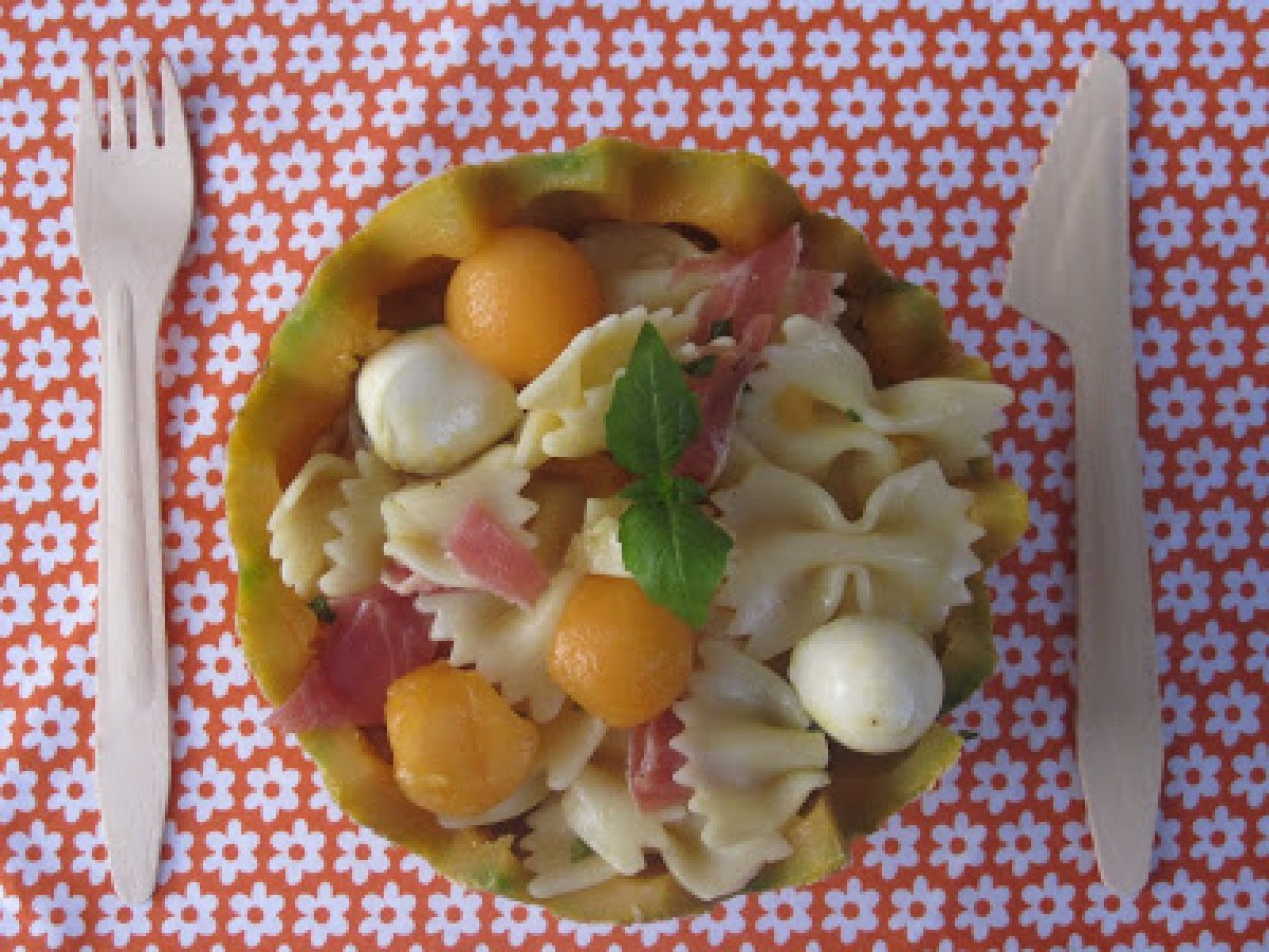 Salade de pâtes au melon et au jambon cru Entréefacile22 min Envoyer cette recette à un ami Imprimer cette page Poser une question à l'auteur Publier votre photo de cette recette Ingrédients 6 300 g de Farfalles crues 1 Cuillère à soupe d'huile d'olive 2 melons moyens 250 g de billes de mozzarella 4 à 6 tranches de jambon cru 1 petit bouquet de basilic / de menthe ou un mélange des deux Sel poivre