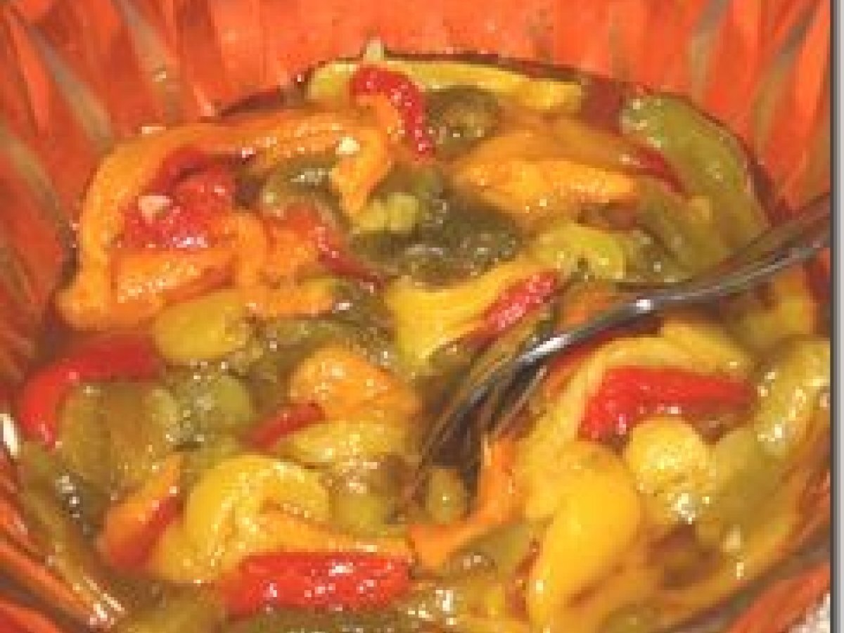 Salade de poivron multicolore Entréefacile25 min107 Kcal Envoyer cette recette à un ami Imprimer cette page Poser une question à l'auteur Publier votre photo de cette recette Ingrédients 4 4 FRAIS Deux poivrons de chaque couleur: vert, rouge, jaune Une gousse ail Huile d'olive Sel,poivre Coût estimé: 2.11Euros€ (0.53€/part)