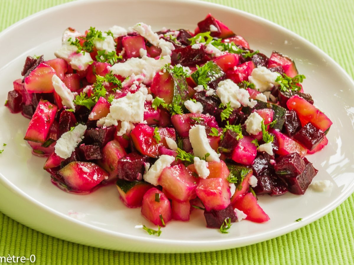 Salade de pomme de terre, courgettes, betteraves et fêta