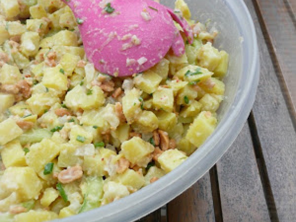 Salade de pommes de terre à la thaï Entréefacile50 min219 Kcal Envoyer cette recette à un ami Imprimer cette page Poser une question à l'auteur Publier votre photo de cette recette Ingrédients 5 500 g de pommes de terre à chair ferme type Charlotte 2 oignons blancs 1/2 concombre 1 citron vert 1 cuillère à soupe de nuoc-mâm 10 cl de lait de coco 1 cuillère à café de sucre roux 50 g de cacahuètes salées 1 petit bouquet de ciboulette Quelques pincées de piment d'Espelette Sel Coût estimé: 2.92Euros€ (0.58€/part)