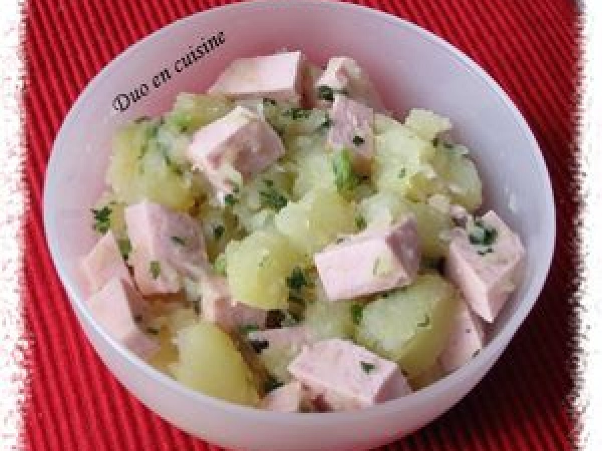 Salade de pommes de terre et cervelas Entréefacile30 min579 Kcal Envoyer cette recette à un ami Imprimer cette page Poser une question à l'auteur Publier votre photo de cette recette Ingrédients 2 4 petites pommes de terre 150 g de cervelas ½ échalote 1 poignée de persil haché ½ cube de bouillon de légumes Moutarde à l'ancienne Huile d'olive Sel poivre Coût estimé: 2.34Euros€ (1.17€/part)