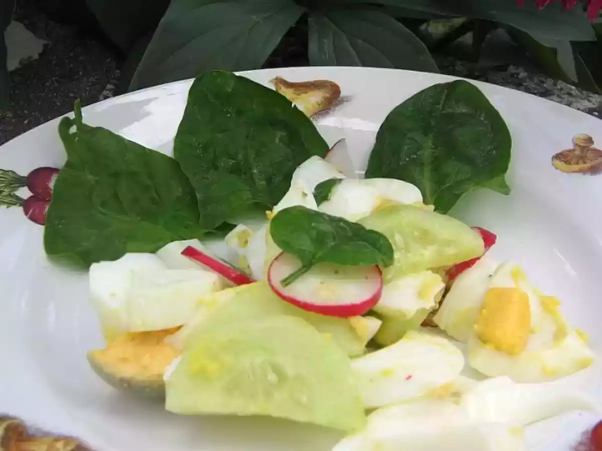 Salade de pousses d?épinard - concombre radis et ?ufs durs