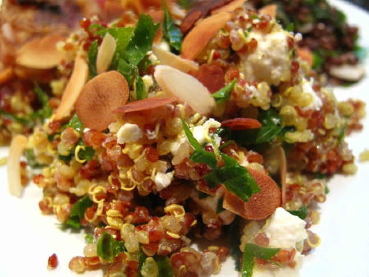 Salade de quinoa aux épices, amandes et féta votez maintenant Entréemoyen25 min Envoyer cette recette à un ami Imprimer cette page Poser une question à l'auteur Publier votre photo de cette recette Ingrédients 4 2 cuillères à soupe huile olive 150 g quinoa blanc 150 g quinoa rouge 1 cuillère à café coriandre moulue 1/2 cuillère à café curcuma en poudre 600 ml eau bouillante 50 g amandes effilées, torréfiées 200 g fêta 1 bouquet de persil, les feuilles uniquement 1/2 à 1 jus de citron sel