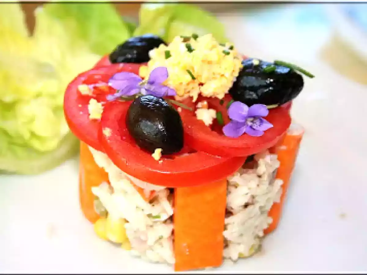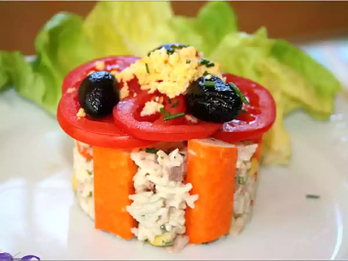 Salade de riz et thon PrécédentSuivant Entréefacile50 min Envoyer cette recette à un ami Imprimer cette page Poser une question à l'auteur Publier votre photo de cette recette Montrez votre savoir en copiant cette belle recette Ingrédients 8 Une boite de thon 1 petite boite de maïs 1 petite de macédoine 3 oeufs durs 1 boite de surimi au crabe Quelques olives noires 100 à 140 g de riz basmati cuit Une botte de ciboulette et cerfeuil Vinaigrette et mayonnaise 3 ou 4 tomates ou concombre ou es deux pour le dessus