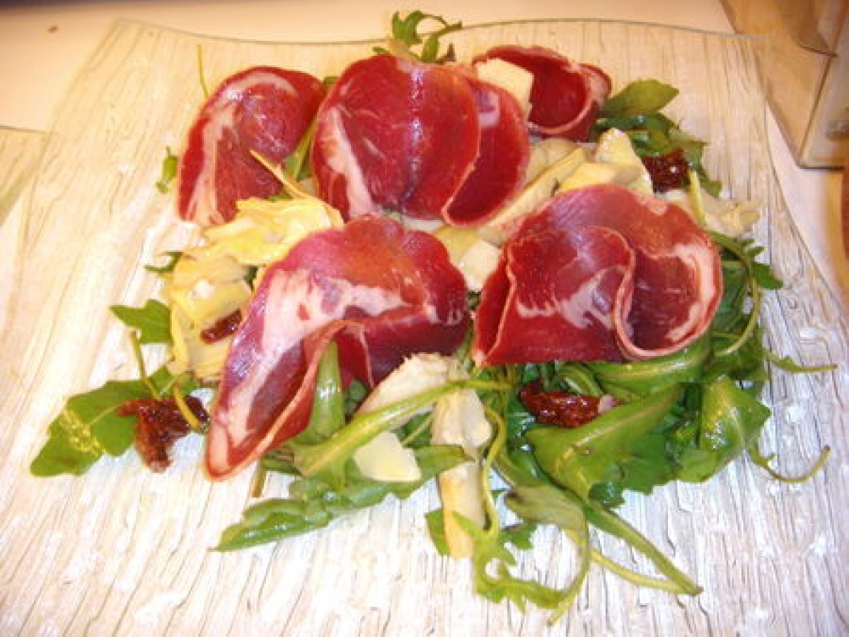 Salade de roquette aux accents d'italie votez maintenant Entréefacile12 min Envoyer cette recette à un ami Imprimer cette page Poser une question à l'auteur Publier votre photo de cette recette Ingrédients 6 250 g de roquette 18 fines tranches de coppa 1 petite boite de coeurs d'artichauts (à l'huile ou au naturel) Quelques tomates cerise Quelques tomates séchées ou confites Quelques feuilles de basilic frais Des copeaux de parmesan Quelques pignons Pour la vinaigrette : 4 cuillères à soupe d'huile d'olive 3 cuillères à soupe de vinaigre balsamique Fleur de sel Poivre du moulin