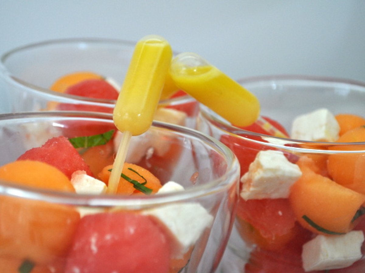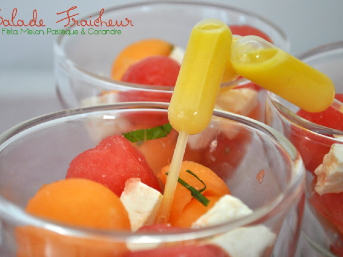 Salade fraicheur {fêta, melon, pastéque & coriandre fraiche}
