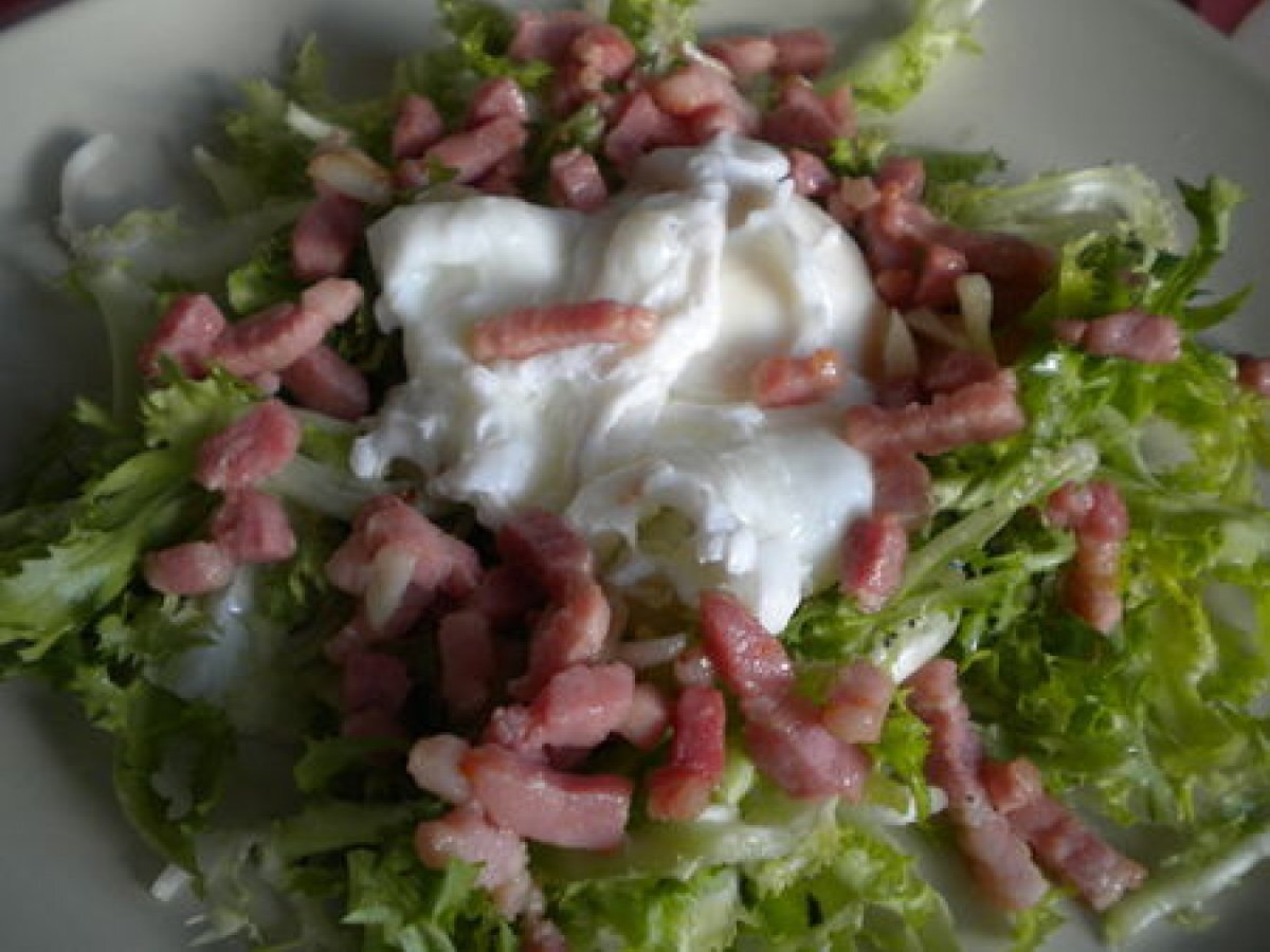 Salade frisée à l'ail et oeuf poché votez maintenant Entréefacile15 min229 Kcal Envoyer cette recette à un ami Imprimer cette page Poser une question à l'auteur Publier votre photo de cette recette Ingrédients 4 4 oeufs 100 g de lardons 1 salade frisée 1 gousse d'ail hachée 4 cuillères à soupe de vinaigre de vin 4 cuillères à soupe de vinaigrette