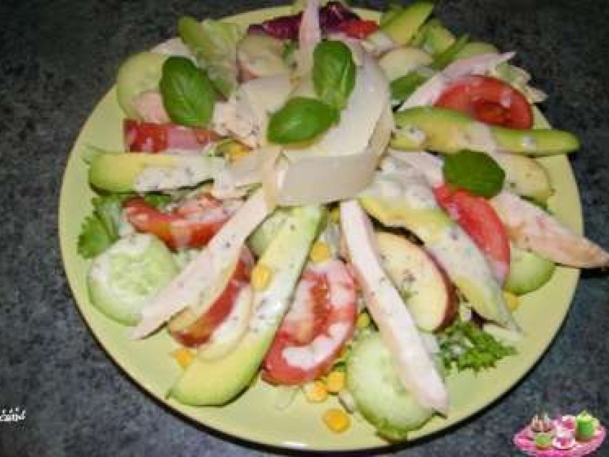 Salade gourmande poulet pomme avocat Entréefacile25 min146 Kcal Envoyer cette recette à un ami Imprimer cette page Poser une question à l'auteur Publier votre photo de cette recette Ingrédients 4 Salade verte avocat tomate concombre pomme maïs Blanc de poulet Parmesan vinaigrette au yaourt basilic et menthe (pour moi) Coût estimé: 4.95Euros€ (1.24€/part)