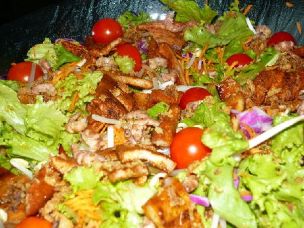 Salade laotienne votez maintenant PrécédentSuivant Entréefacile8 min Envoyer cette recette à un ami Imprimer cette page Poser une question à l'auteur Publier votre photo de cette recette Ingrédients 4 salade verte chou rouge carotte râpée poitrine de porc grillée avec épices barbecue + sauce hoisin coupée en lamelles crevettes grises décortiquées tomates cerises pousses de soja fraîches oignons frits (rayon mayonnaises) citron huile de tournesol nuoc mam