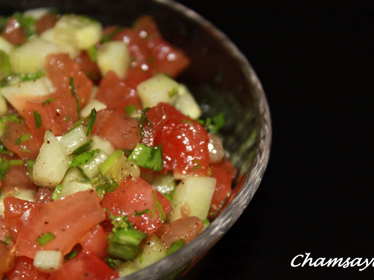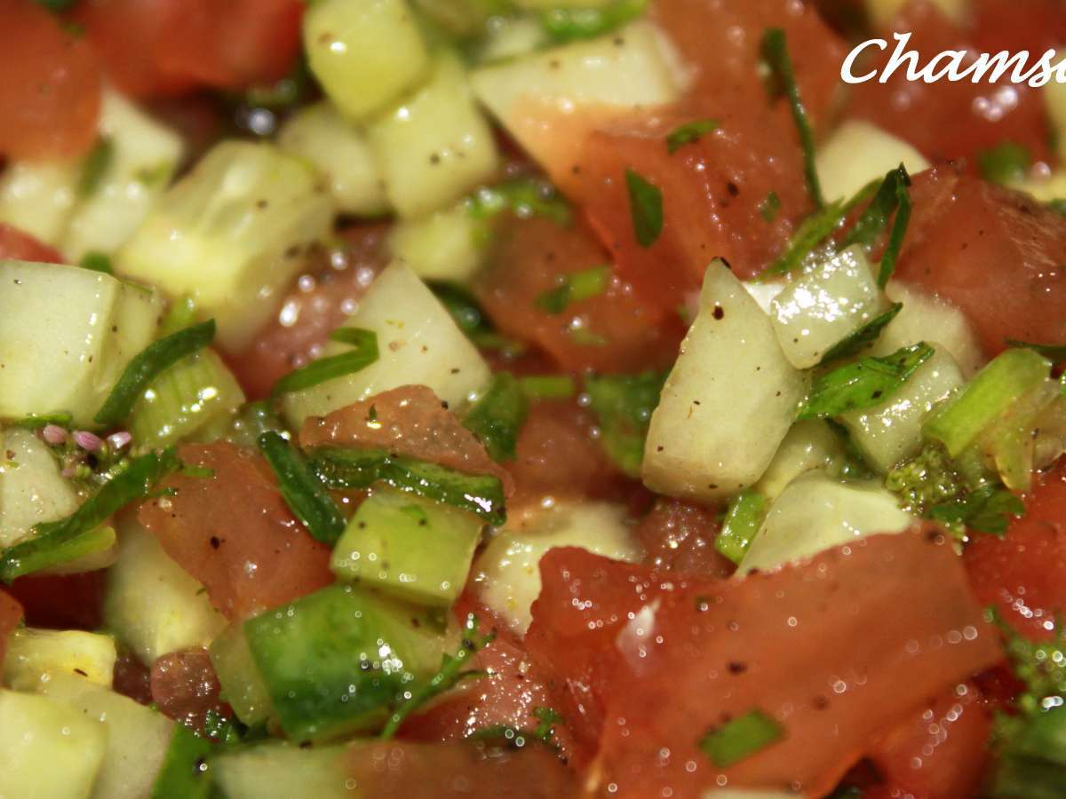 Salade concombre et tomates PrécédentSuivant Entréefacile15 min62 Kcal Envoyer cette recette à un ami Imprimer cette page Poser une question à l'auteur Publier votre photo de cette recette Ingrédients 2 1/2 concombre 4 tomates 1 cébette sel poivre 1/2 cas d'huile d'olive 1/2 cas de vinaigre