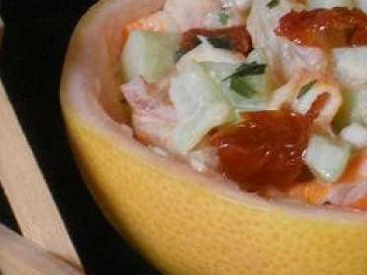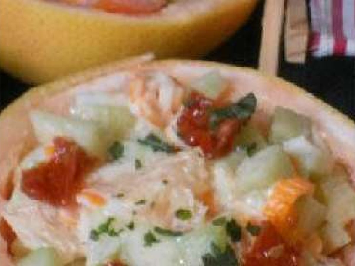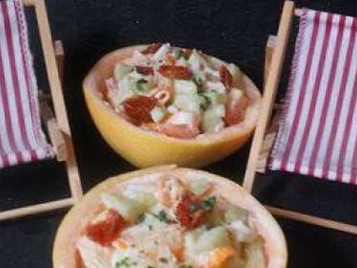 Salade pamplemousse crabe PrécédentSuivant Entréefacile20 min151 Kcal Envoyer cette recette à un ami Imprimer cette page Poser une question à l'auteur Publier votre photo de cette recette Ingrédients 2 1 pamplemousse 6 batonnets de surimi 4 tomates cerises 4 tomates confites 1/4 de concombre 2 cuillères à café de mayonnaise ( maison ou toute prête au rayon frais) 1 cuillère à café de coulis de tomates ( je vous accorde le ketchup !)