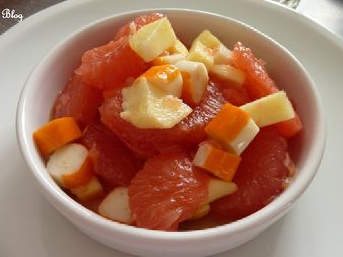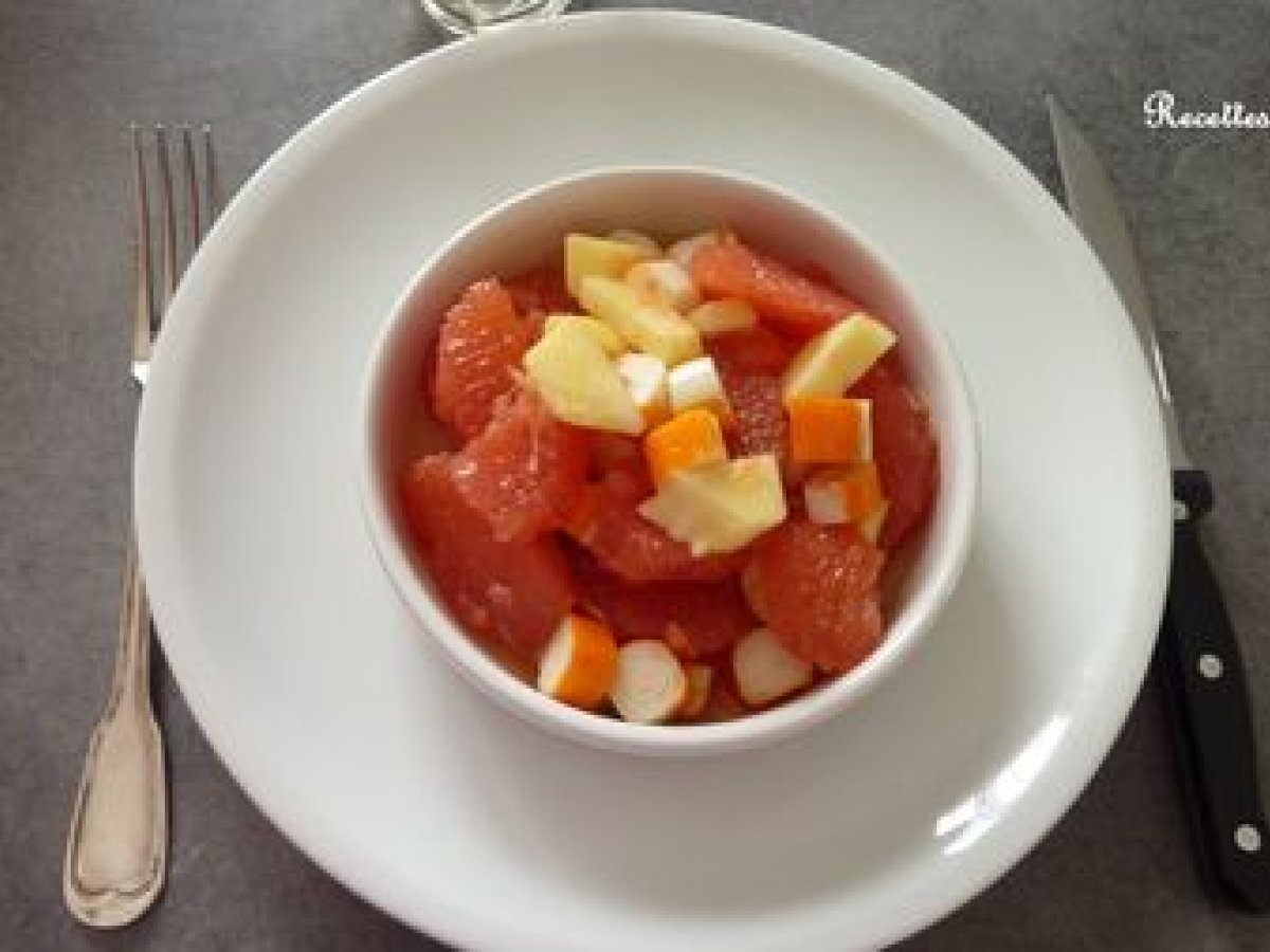 Salade pamplemousse surimi pomme PrécédentSuivant Entréefacile15 min269 Kcal Envoyer cette recette à un ami Imprimer cette page Poser une question à l'auteur Publier votre photo de cette recette Ingrédients 4 4 pamplemousses 1 pomme Golden 10 bâtons de surimi 1 cuillère à café de moutarde rase sel piment d'Espelette 2 cuillères à soupe d'huile d'olive 1 cuillère à café de vinaigre balsamique