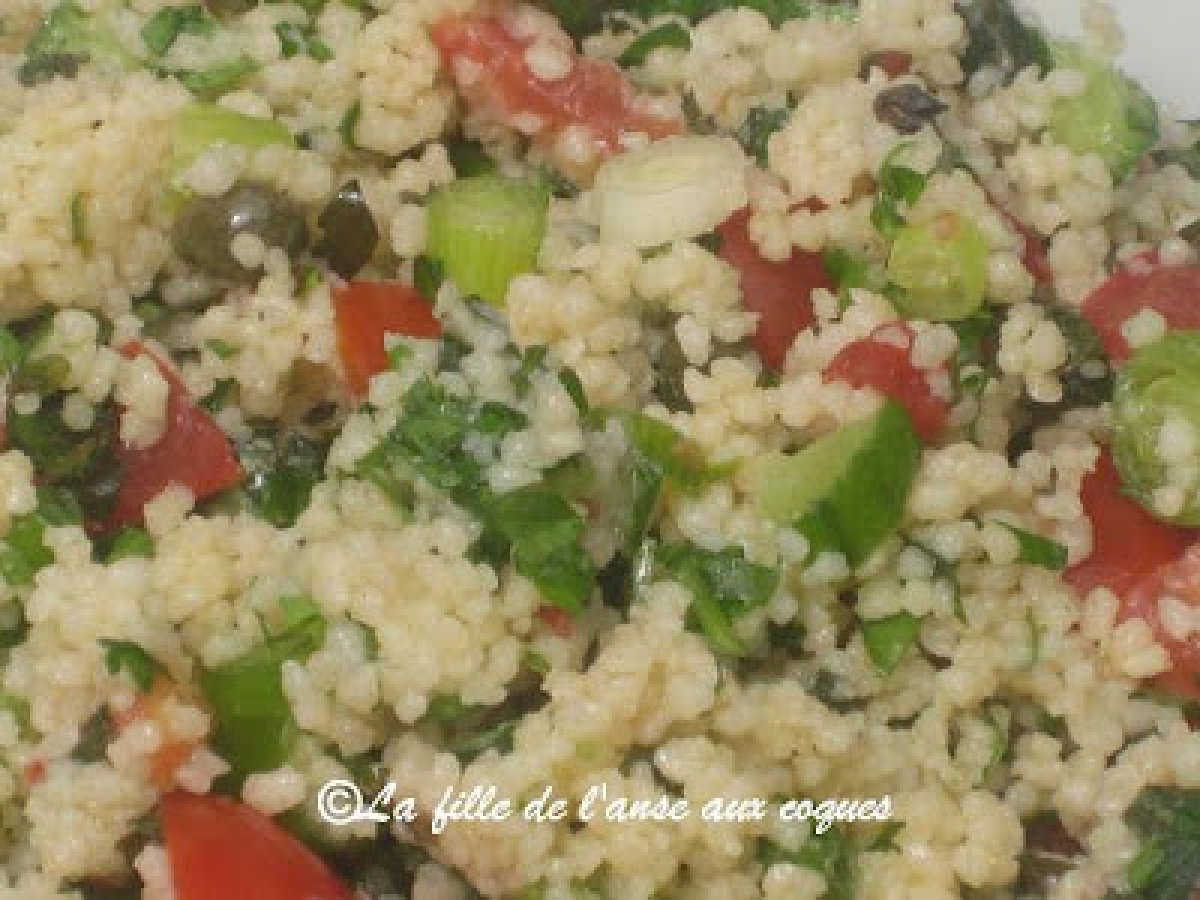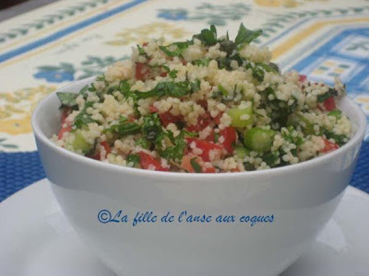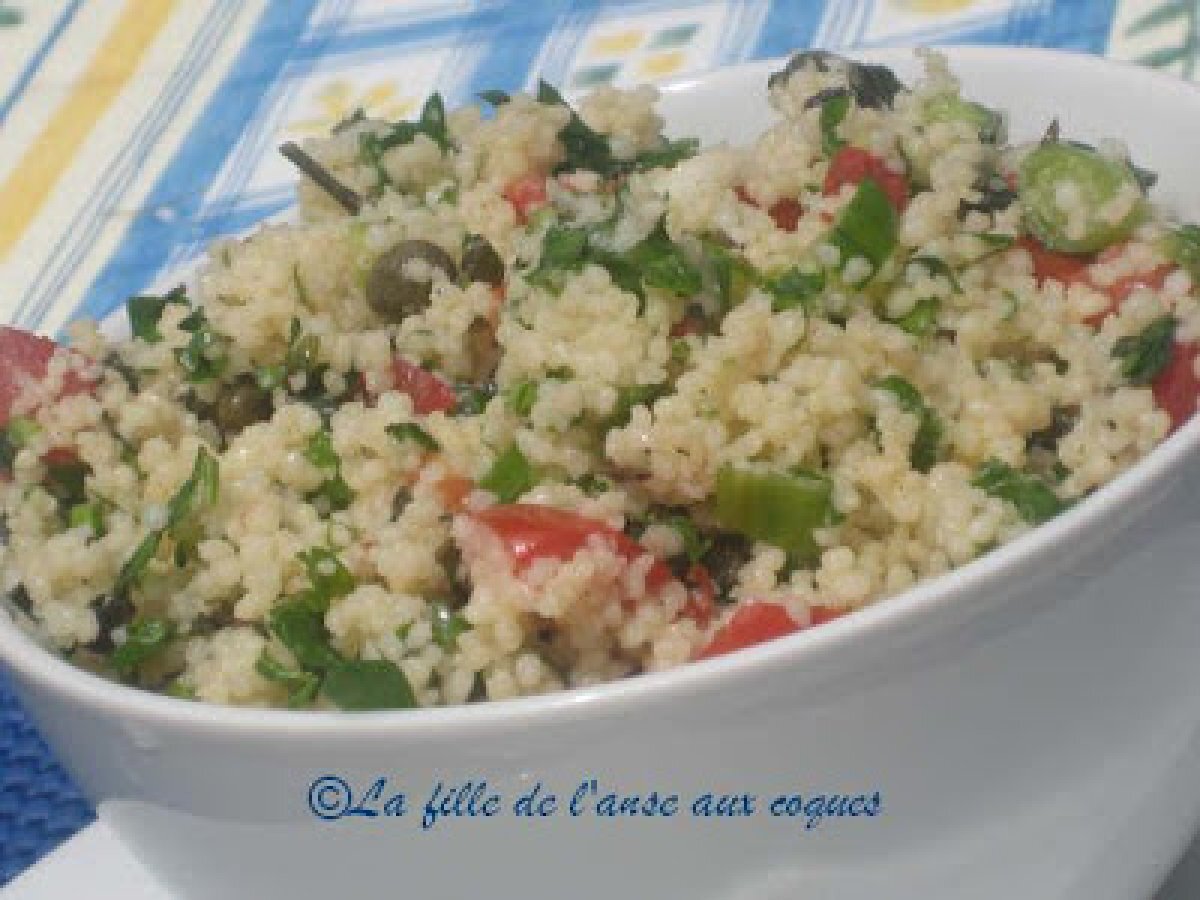 Salade provençale de couscous PrécédentSuivant Entréefacile15 min Envoyer cette recette à un ami Imprimer cette page Poser une question à l'auteur Publier votre photo de cette recette Ingrédients 8 ¼ tasse (60 ml) de menthe fraîche hachée ¼ tasse (60 ml) de basilic frais haché 3 gousses d'ail passé au presse-ail 3 tomates hachées ½ concombre épépiné et dégorgé haché en petits cubes 4 oignons verts hachés 2 cuillères à table (30 ml) de câpres ½ tasse (125 ml) de persil frais haché 1 ½ tasses (375 ml) de bouillon de poulet 1 ½ tasses (375 ml) de couscous 1 cuillère à table (15 ml) de beurre ou de margarine sel et poivre Vinaigrette : 1 cuillère à table (15 ml) de vinaigre de vin rouge ou balsamique 3 cuillères à table (45 ml) d'huile d'olive
