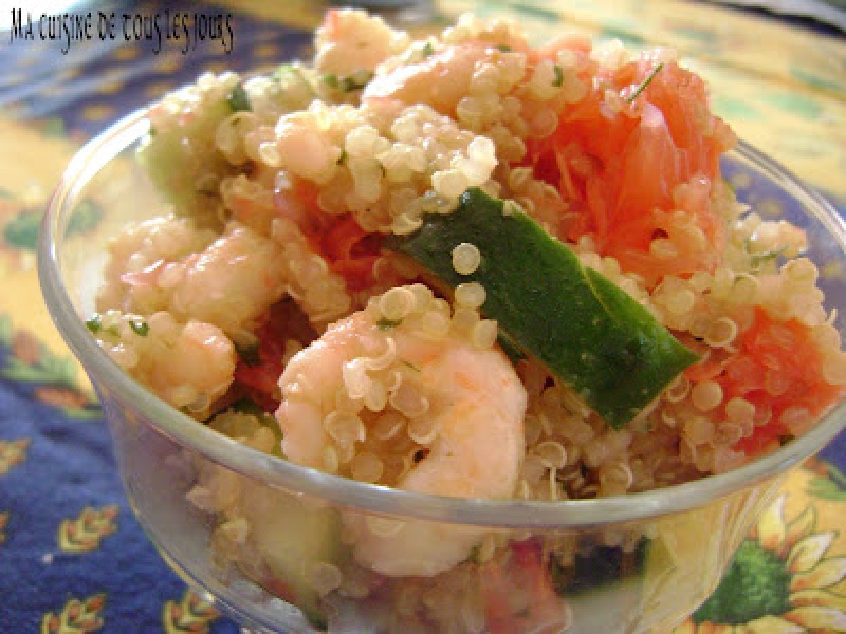 Salade quinoa aux crevettes et vinaigrette citron vin blanc