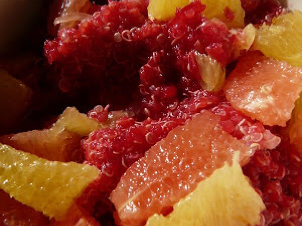 Salade rose de quinoa aux agrumes PrécédentSuivant Entréefacile20 min131 Kcal Envoyer cette recette à un ami Imprimer cette page Poser une question à l'auteur Publier votre photo de cette recette Ingrédients 4 200 g de quinoa 1 orange 1 cuillère de jus d'orange 1 pamplemousse 1 betterave rouge crue 1 cuillère à soupe de vinaigre de cidre