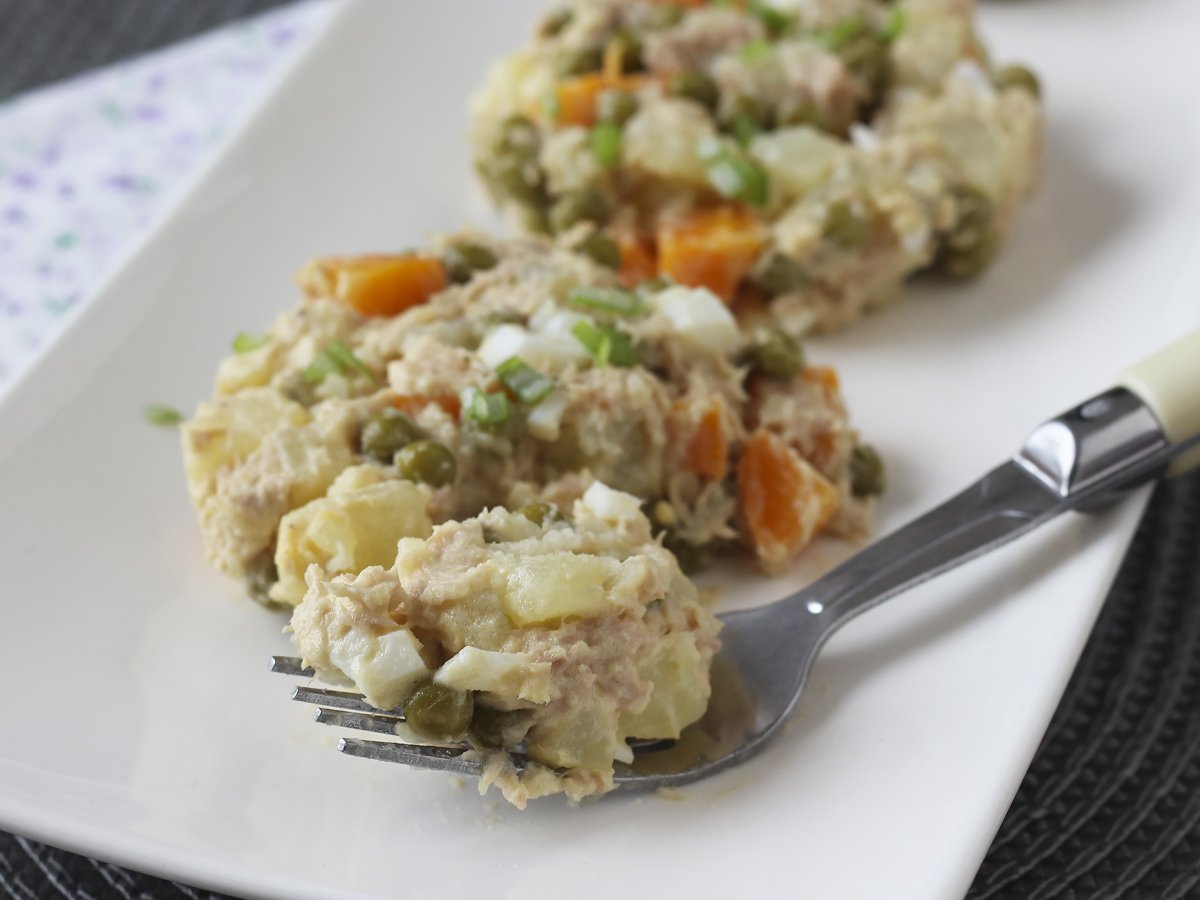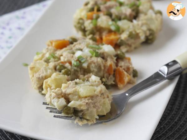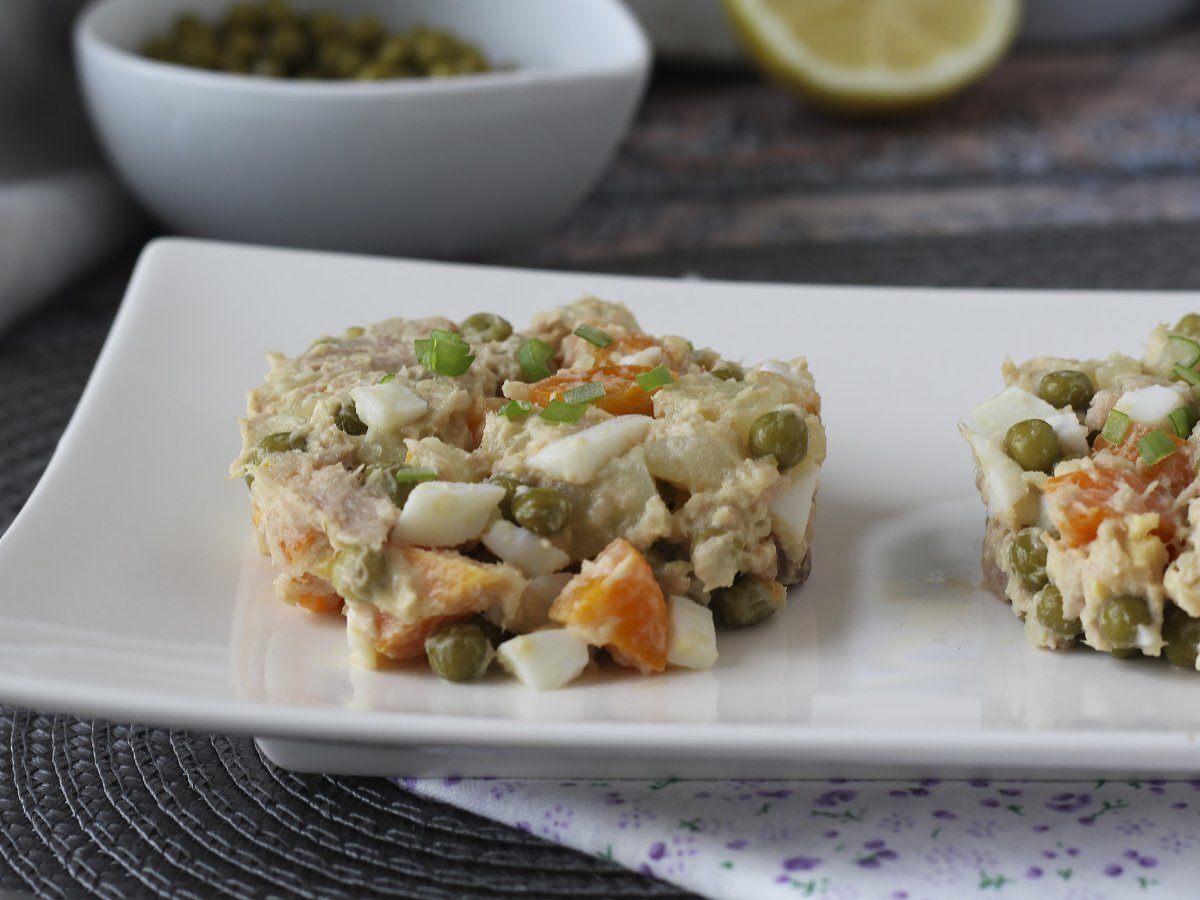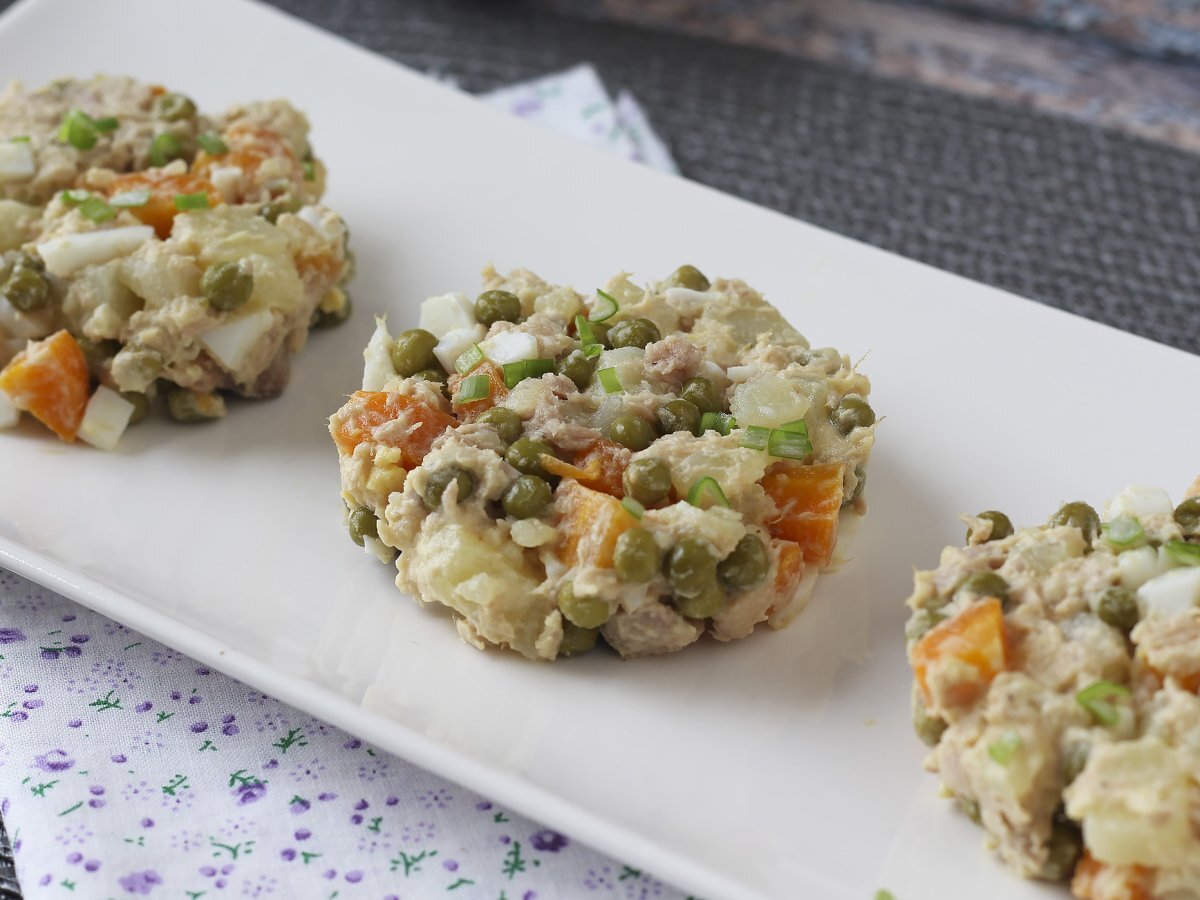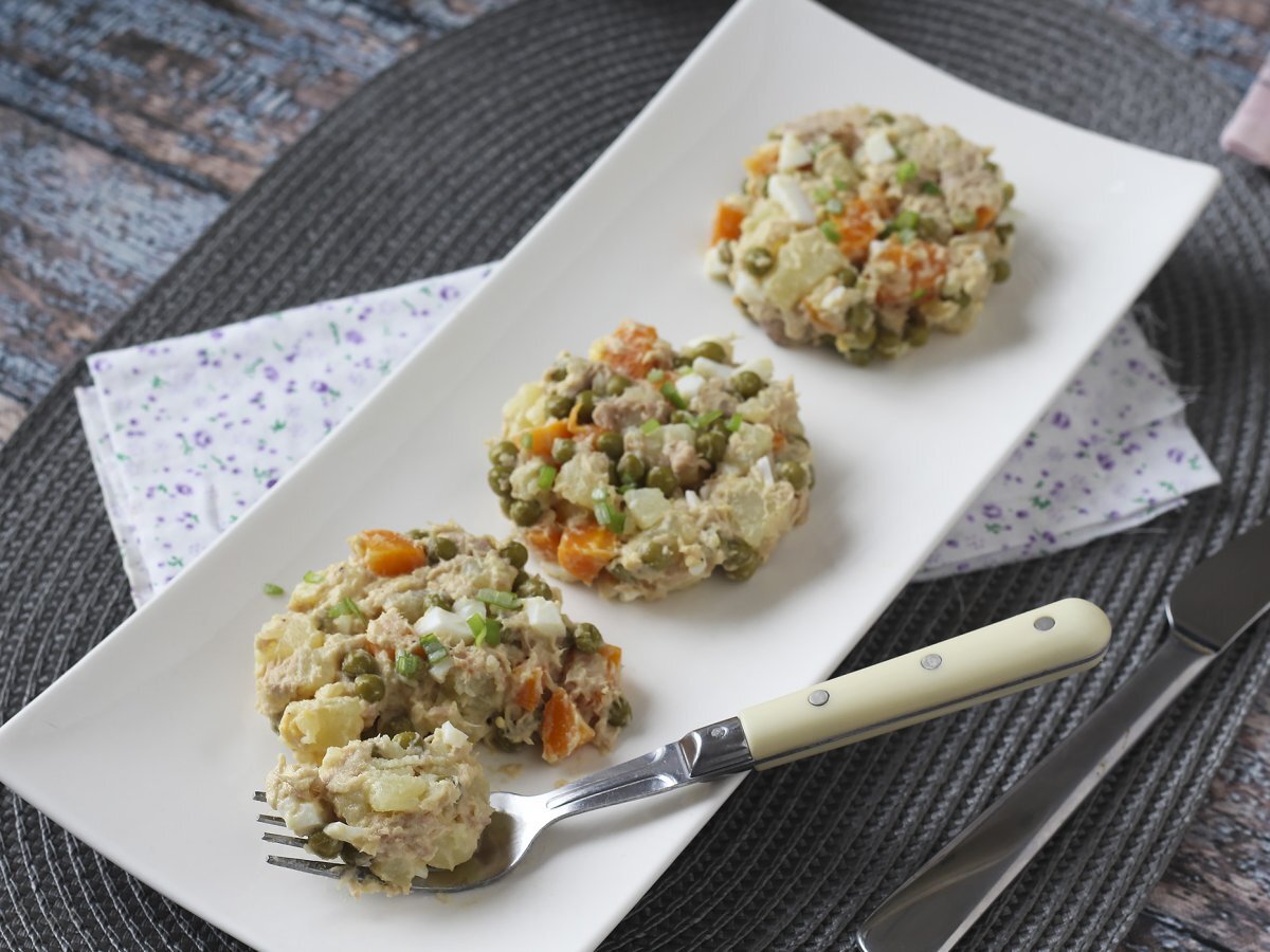 Facile à préparer et incroyablement savoureuse, cette salade russe est un classique incontournable! Très proche de notre célèbre macédoine, cette salade mélange carottes, pommes de terre, petits pois, le tout lié par une onctueuse mayonnaise maison. Ici on a ajouté un œuf dur et du thon pour les protéines, mais vous pouvez tout à fait mettre du jambon par exemple! C'est une recette parfaite pour accompagner un barbecue ou pour emporter en pique-nique :-)