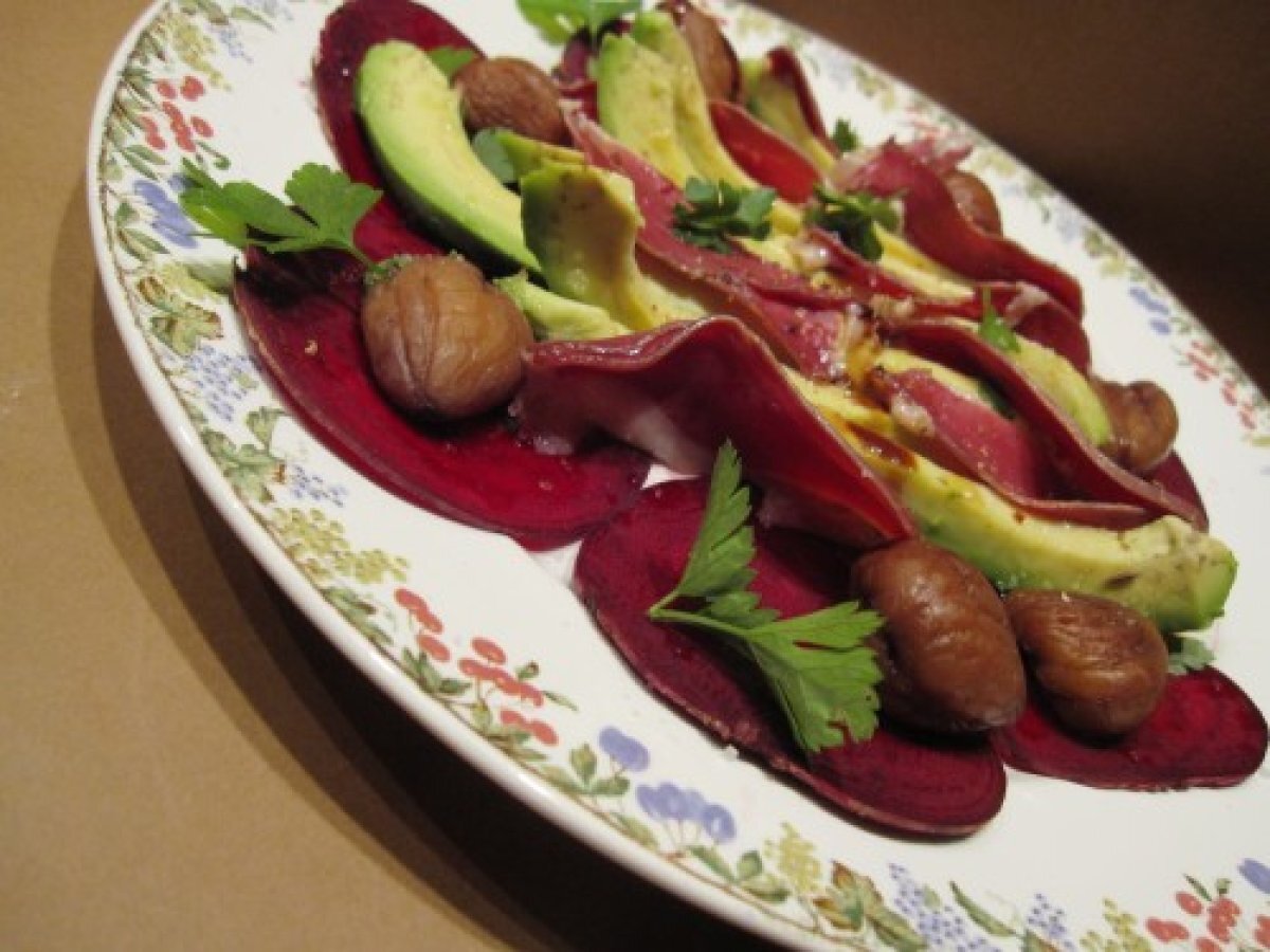 Salade tiède de betterave et de châtaignes, filets de magret de canard votez maintenant Entréefacile32 min Envoyer cette recette à un ami Imprimer cette page Poser une question à l'auteur Publier votre photo de cette recette Ingrédients 4 2 betteraves crues 2 avocats 1 jus de citron 2 poignées de châtaignes cuites 1 bouquet de persil 2 cuillères à soupe d'huile de sésame 20 filets de magret de canard Crème de balsamique Fleur de sel poivre 5 baies