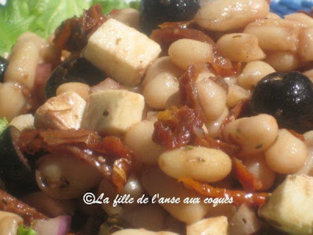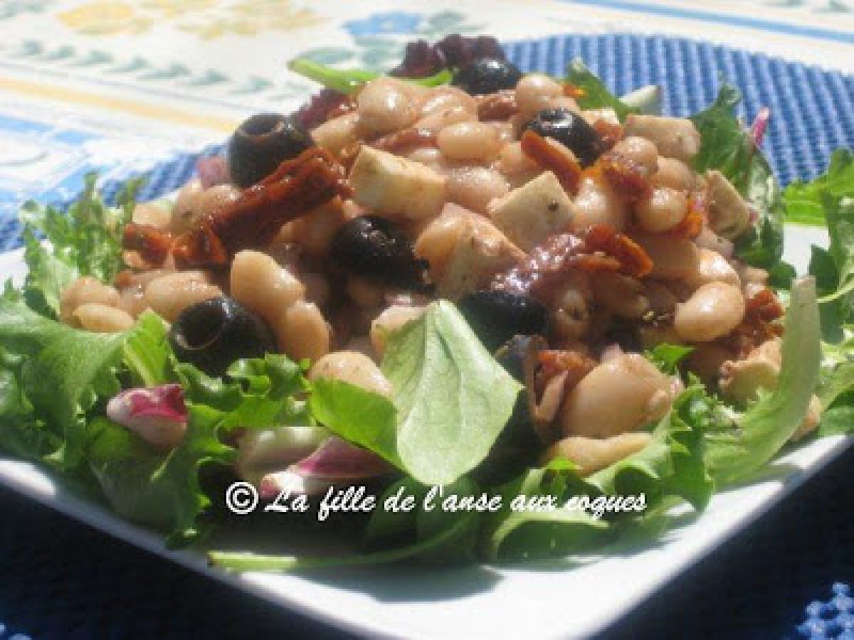 Salade toscane aux haricots blancs PrécédentSuivant Entréefacile15 min Envoyer cette recette à un ami Imprimer cette page Poser une question à l'auteur Publier votre photo de cette recette Ingrédients 5 Salade : 2 boîtes de haricots blancs rincés et égouttés 1 gros oignon rouge finement haché Environ ¾ tasse de tomates séchées dans l'huile bien épongées et hachées Environ 1 tasse de mozzarella fraîche en dés 2 douzaines d'olives noires dénoyautées 8 à 10 tasses de mesclun Sauce au vinaigre balsamique et à l'origan : 1 gousse d'ail au presse-ail 1 cuillère à soupe d'origan frais ciselé ¼ tasse de vinaigre balsamique ¼ tasse d'huile d'olive