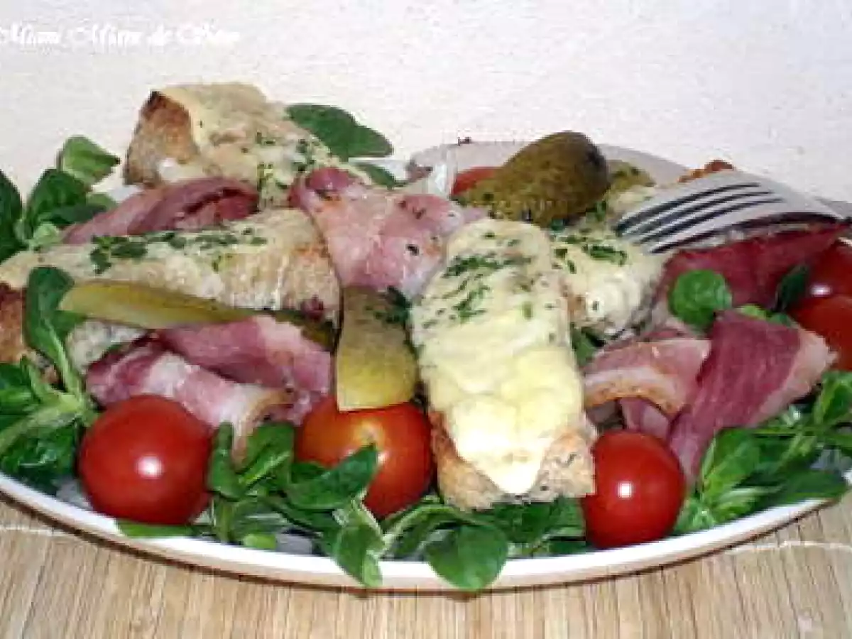 Salade valaisane Entréefacile25 min Envoyer cette recette à un ami Imprimer cette page Poser une question à l'auteur Publier votre photo de cette recette Ingrédients 4 Viande de grison ou jambon cru ou fines tranches de lard, tomates cerices, mélange de salade( scarole, iceberg, laitue, mache au choix), beurre, tête de moine ou fromage à raclette, toasts de pain complet, cornichons, sel et poivre, persil,