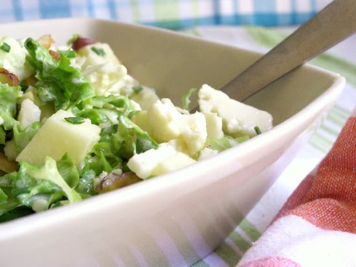 Salade verte croquante à la pomme et chou-fleur cru Entréefacile15 min144 Kcal Envoyer cette recette à un ami Imprimer cette page Poser une question à l'auteur Publier votre photo de cette recette Ingrédients 4 6 grandes feuilles de salade verte un petit morceau de chou-fleur ½ pomme quelques tiges de ciboulette une dizaine de noisettes 1 cuillère à café de moutarde 3 cuillère à soupe de crème fleurette 1 cuillère à soupe de jus de citron 1 pincée de sel Coût estimé: 4.18Euros€ (1.05€/part)