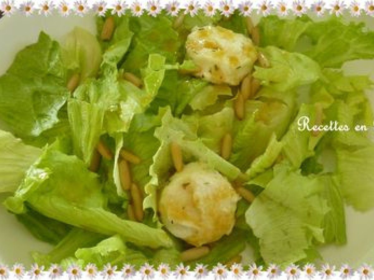Salade verte, pignons et ses fromages de chèvre rôtis au miel et a la sauge