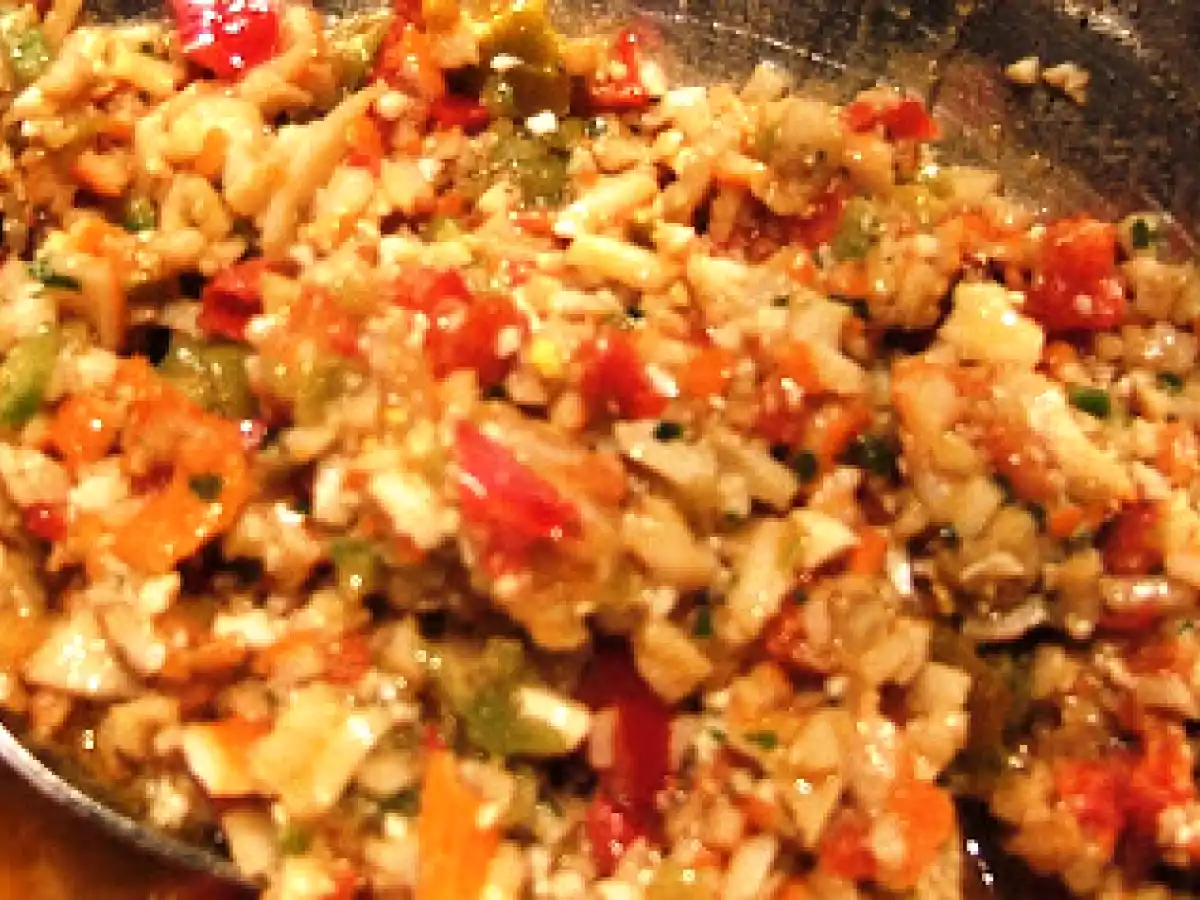 "salpicon" de mer (salade) Entréefacile4 min380 Kcal Envoyer cette recette à un ami Imprimer cette page Poser une question à l'auteur Publier votre photo de cette recette Une recette vraiment délicieux, facile à faire!! Ingrédients 6 250 g de bâtonnet de surimi 100 g de poivron rouge (tranche) 100 g de poivron vert (tranche) 3 tranches d'oignon 2 oeufs durs 200 g d'huile d'olive 50 g d'un bon vinaigre persil
