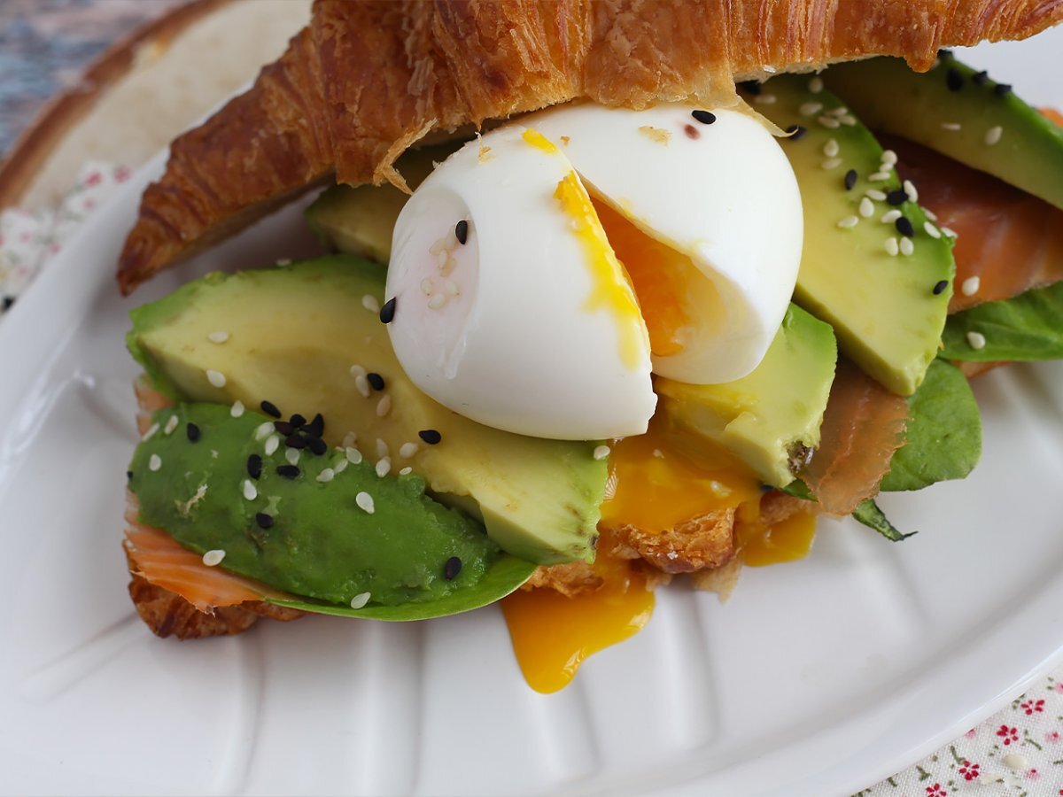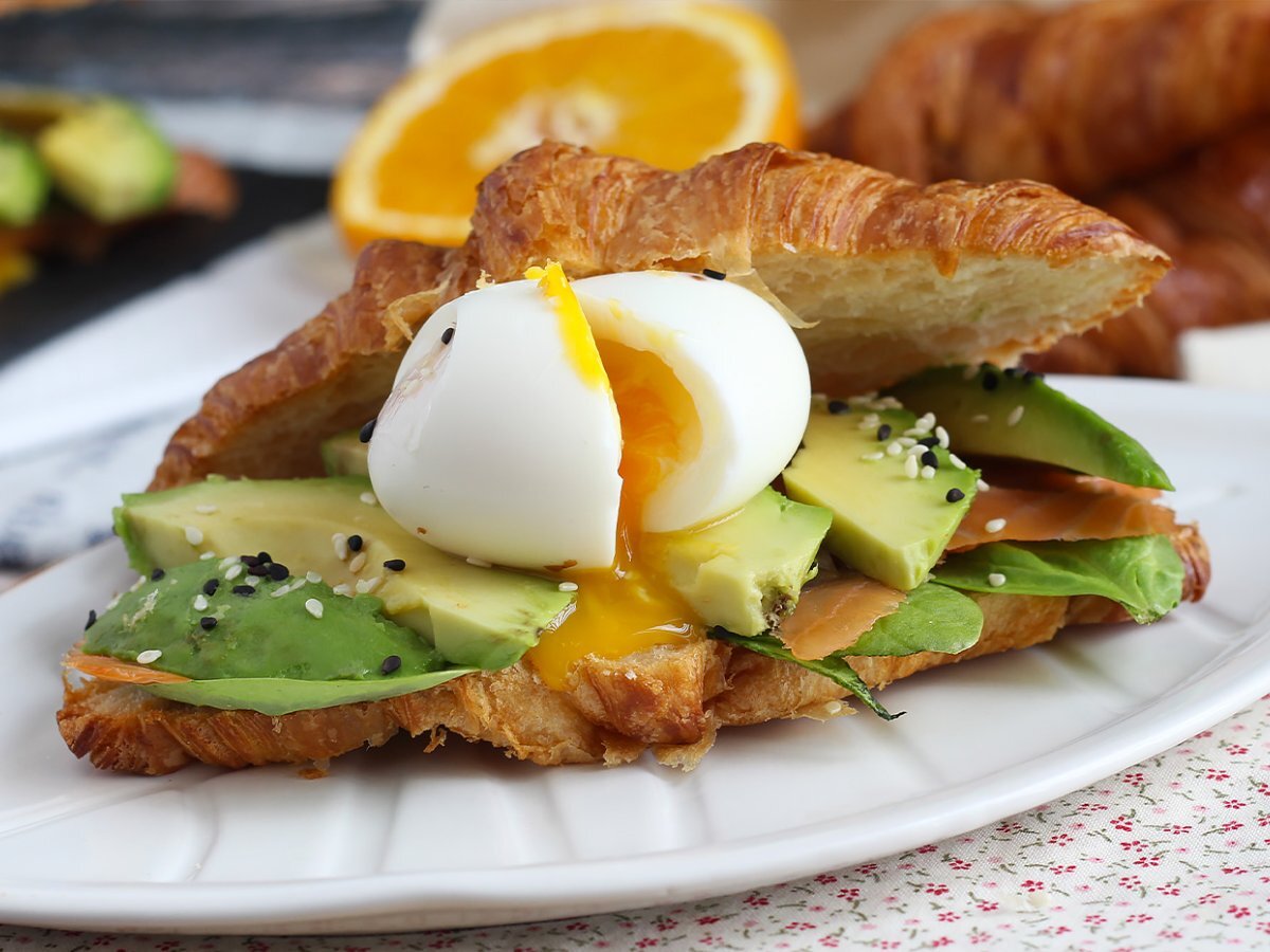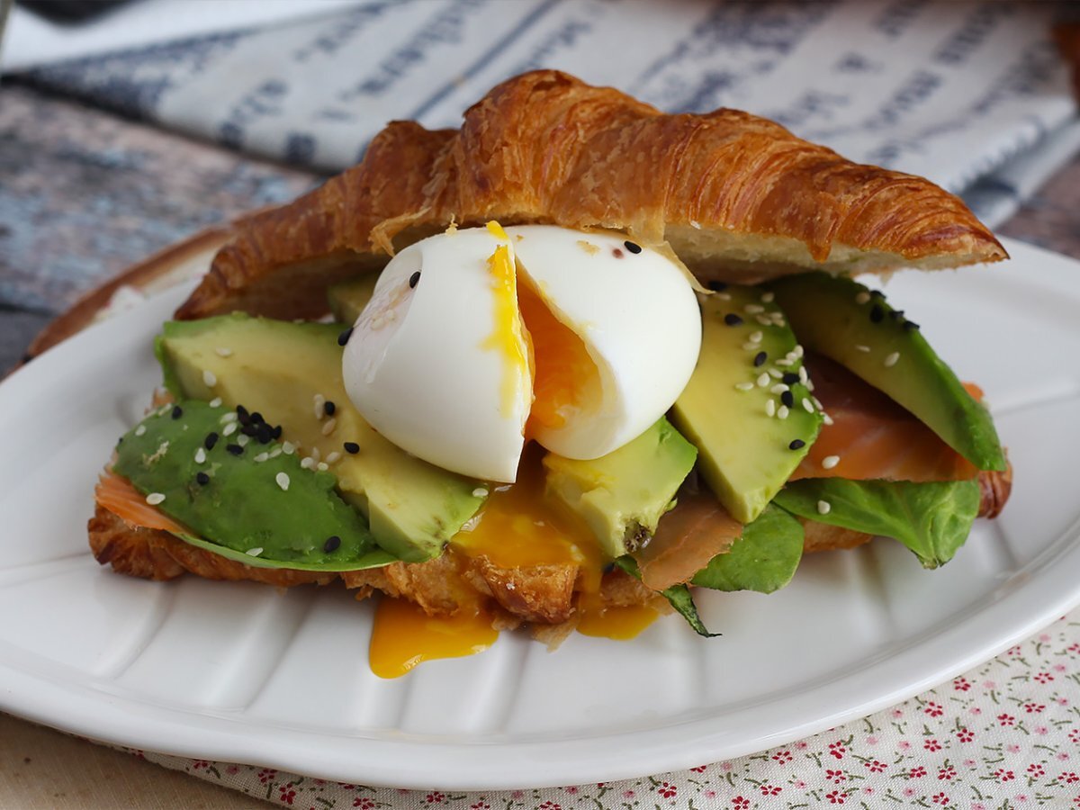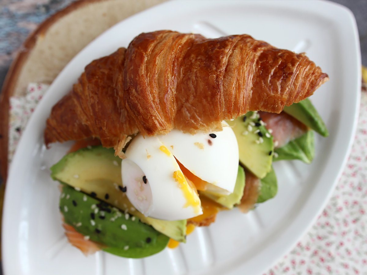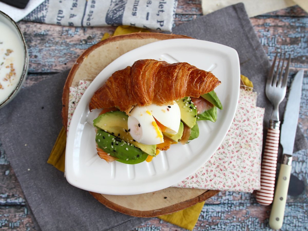 Avis aux amateurs de petit-dej salés, on a trouvé la recette qui vous ravira de bonheur ! Un croissant pour le côté sucré et croustillant, un avocat pour le fondant, du saumon fumé pour les saveurs iodées et un oeuf mollet pour le coeur coulant irrésistible. Pendant que votre café coule, on vous laisse avec les étapes de ce sandwich brunch juste en-dessous ↓