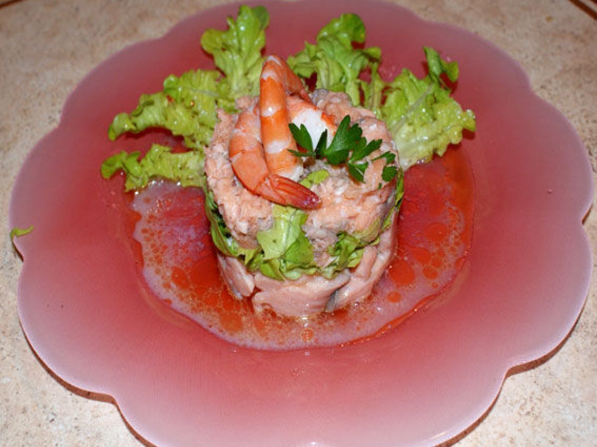 Saumon, crabes et crevettes en méli-mélo Entréefacile30 min Envoyer cette recette à un ami Imprimer cette page Poser une question à l'auteur Publier votre photo de cette recette Ingrédients 4 200 g de saumon frais 100 g de saumon fumé 200 g de crabe surgelé ou frais et décortiqué ou vous avez ajouter 2 cuillerées à soupe de mayonnaise 12 crevettes roses Vinaigrette : 10 cuillerées à soupe d'huile d'olive 1 cuillerée à soupe de jus de citron vert 2 cuillerées à soupe de jus de pamplemousse 2 cuillerées à soupe de jus d'orange 1 cuillerée à soupe de ciboulette hachée sel poivre piment d'espelette quelques feuilles de salade verte