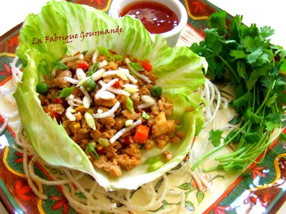 Shēngcài bāo "chicken lettuce wrap" laitue roulée au poulet