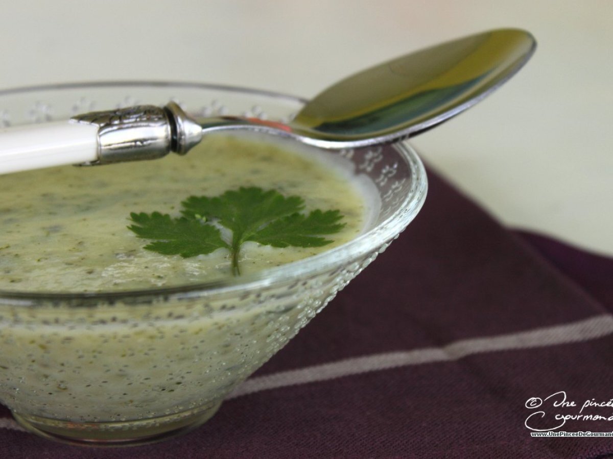 Une petite soupe qui réunit la douceur de la courgette, la fraîcheur de la coriandre et la douceur du fromage frais
