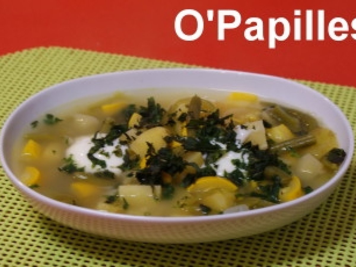 Soupe d'été aux haricots verts, courgettes et poivrons Entréefacile55 min462 Kcal Envoyer cette recette à un ami Imprimer cette page Poser une question à l'auteur Publier votre photo de cette recette Ingrédients 4 350g de haricots verts 2 courgettes 2 poivrons 500g de pommes de terre 2 oignons 2 gousses d'ail des brins de menthe 2 cuillères à soupe d'huile de tournesol 20cl de crème fraîche sel et poivre Coût estimé: 5.89Euros€ (1.47€/part)