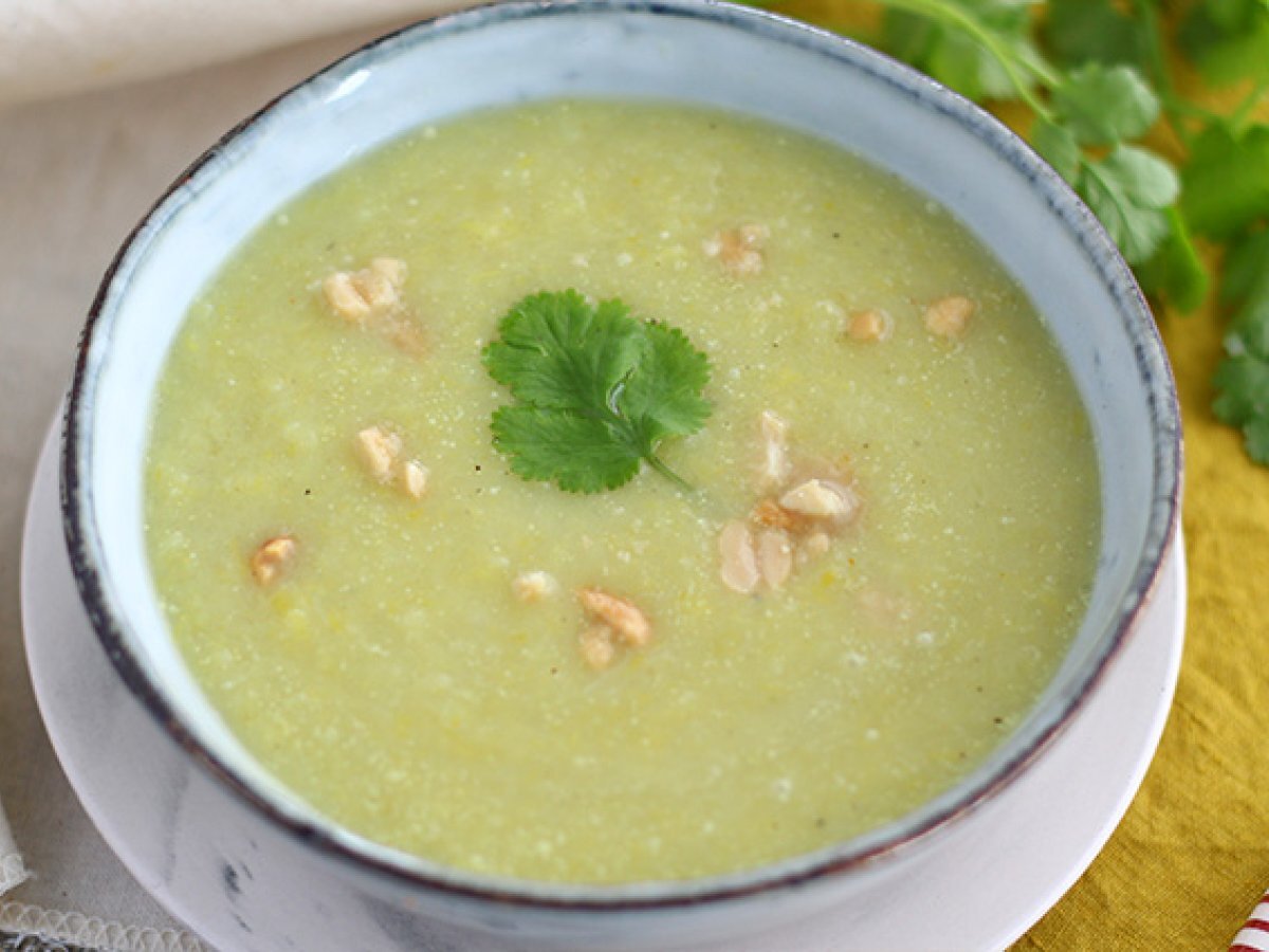 Et voilà, c'est prêt ! Vous pouvez saupoudrer la soupe de cacahuètes et de feuilles de coriandre.