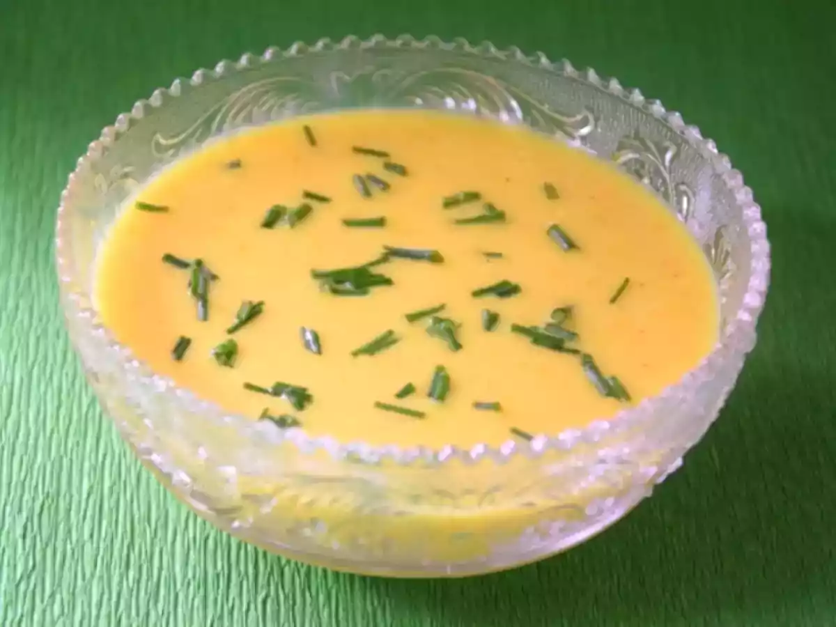 Soupe froide de courgettes jaunes au citron confit et curcuma (ig bas)