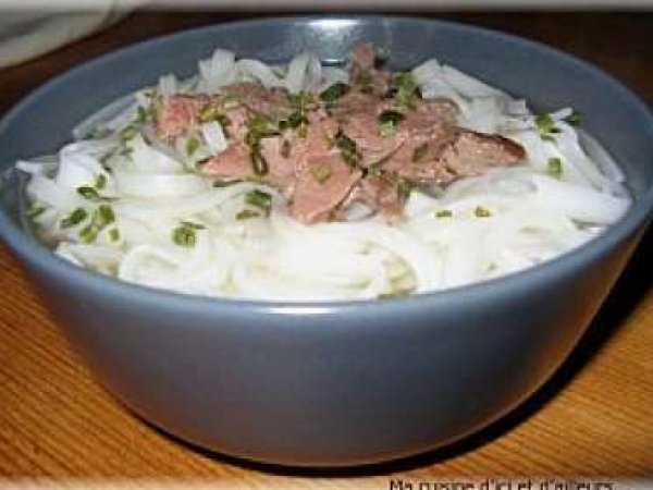 Soupe pho Entréemoyen25 min Envoyer cette recette à un ami Imprimer cette page Poser une question à l'auteur Publier votre photo de cette recette Ingrédients 4 00 gr de viande de boeuf maigre et tendre 1 citron vert 1 morceau de gingembre de 3 cm 1 petit piment (doux pour moi à cause des enfants) 1 petit bouquet de coriandre fraîche 1 petit bouquet de ciboulette 400 gr de nouilles de riz 1 litre et demi de bouillon de pot au feu (maison pour moi mais vous pouvez utilisez 2 cubes) 3 graines de badiane 4 cuillères à café de nuoc-mam