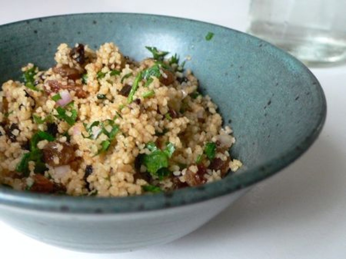Taboulé d'hiver à la tomate séchée Entréefacile25 min404 Kcal Envoyer cette recette à un ami Imprimer cette page Poser une question à l'auteur Publier votre photo de cette recette Ingrédients 4 1 poignée de raisins secs 4 demi-tomates séchées 1 verres de couscous demi-complet 1 citron 1 échalote quelques brins de persil (persil tubéreux ou persil plat) quelques feuilles de menthe du sel 1 cuillère à soupe d'huile de sésame Coût estimé: 3.25Euros€ (0.81€/part)