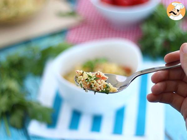 C'est la première fois que je vois une recette de taboulé où on ne cuit pas la semoule. C'est bien meilleur comme çà !