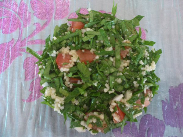 Taboulé libanais, la recette traditionnelle PrécédentSuivant Entréefacile15 min Envoyer cette recette à un ami Imprimer cette page Poser une question à l'auteur Publier votre photo de cette recette Et si on faisait voyager ses papilles ? Ingrédients 4 3 bouquets de persil plat 1/2 bouquet de menthe fraîche 5 belles tomates épluchées, épépinées et coupées en petits dés 2 oignons nouveaux ou 1 petit oignon 2 c.à.s de boulgour fin (au rayon féculant ou semoule des grandes surfaces) 1 jus de citron 3 c.à.s d'huile d'olive Sel, poivre
