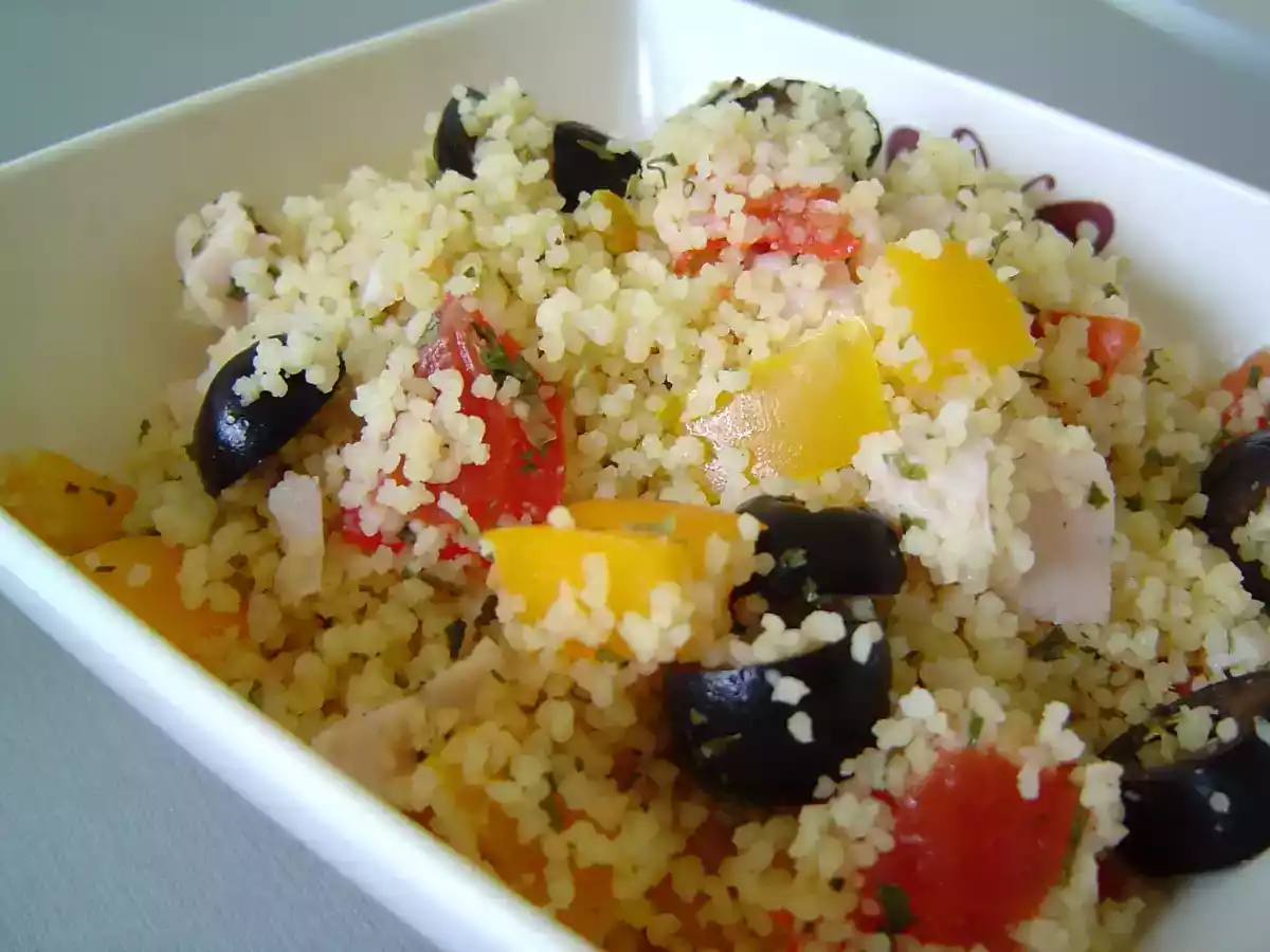 Une recette pour changer du taboulé classique. À préparer de préférence la veille. Ça sera une bonne occasion d'utiliser vos restes de poulet ;-)