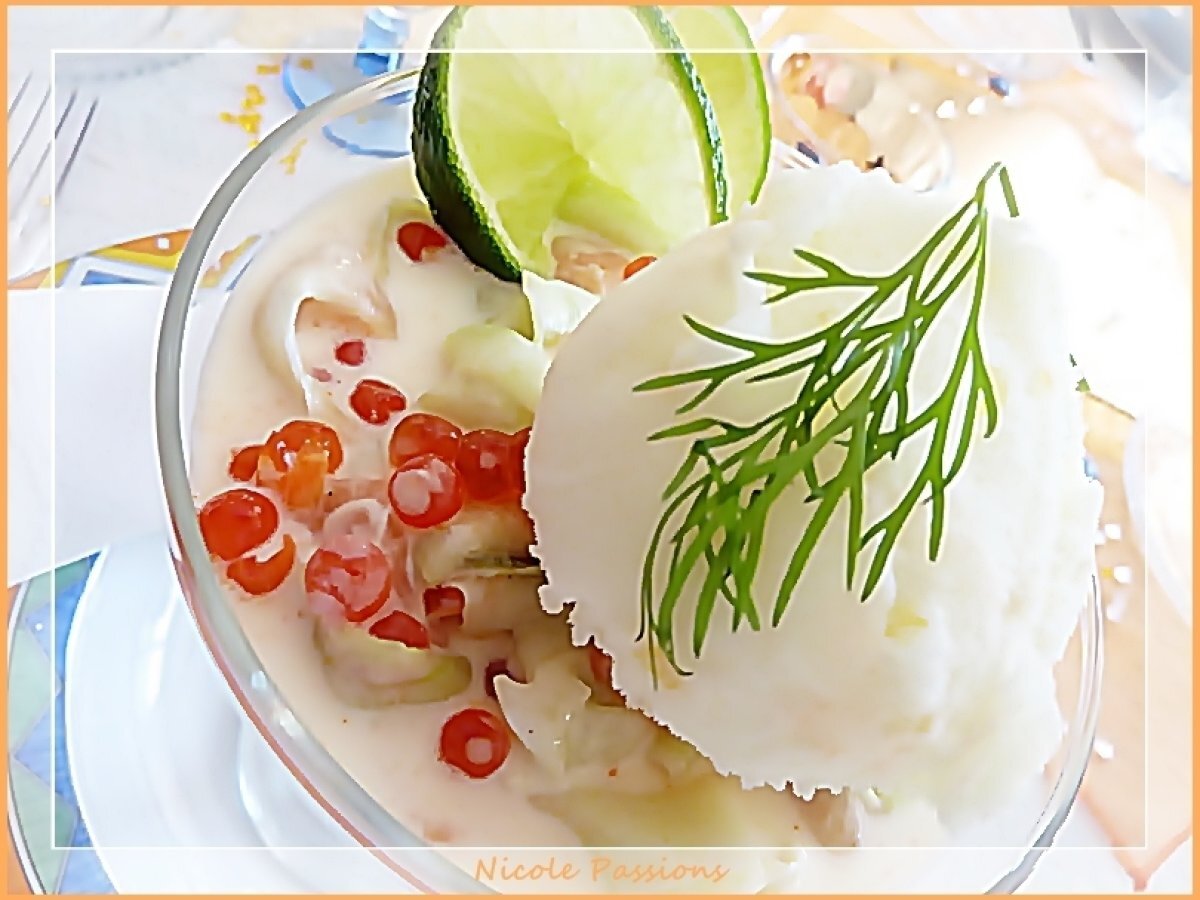 Tagliatelles de concombre au saumon et son sorbet de citron PrécédentSuivant Entréemoyen15 min Envoyer cette recette à un ami Imprimer cette page Poser une question à l'auteur Publier votre photo de cette recette Ingrédients 4 2 concombres 300 gr de saumon fumé 15 cl de crème allégée 1 cuillères à soupe de citron pressé sel poivre aneth oeufs de saumon 4 boules de sorbet de citron