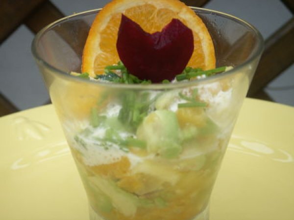 Tartare d'avocats aux agrumes et p'tit coeur de betterave PrécédentSuivant Entréefacile10 min423 Kcal Envoyer cette recette à un ami Imprimer cette page Poser une question à l'auteur Publier votre photo de cette recette Ingrédients 4 2 pamplemousses roses 1 citron 2 oranges 1 échalote moyenne 3 avocats bien mûrs 1 petit bouquet de ciboulette 4 cuillerées à soupe d'huile d'olive 3 cuillères à soupe de crème fraîche allégée ou de yaourth sel poivre quelques gouttes de Tabasco Coût estimé: 9.35Euros€ (2.34€/part)