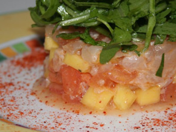 Un excellent tartare de daurade à la mangue, au aspect et au goût c'est top! Il est très simple et facile à réaliser.